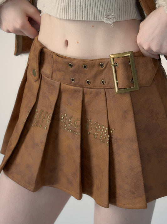 Maillard Stand Collar Short Leather Jacket + Tight Leather Skirt
