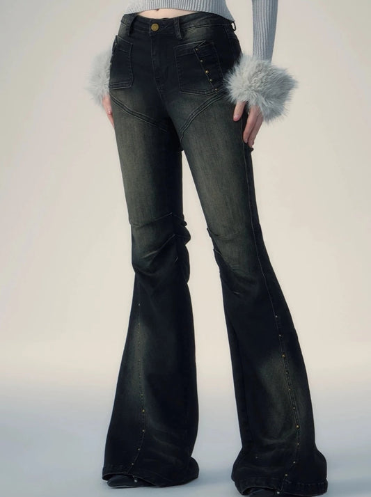 Dark Millennium Cross Chain Leather Bootcut Pants