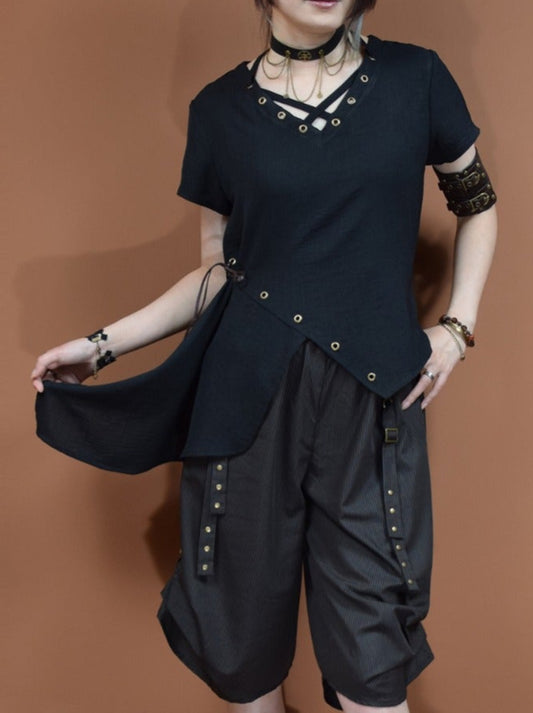 Dark Punk Rouse Black Irregular Hem T-Shirt