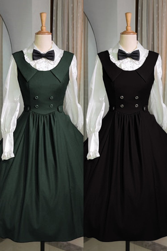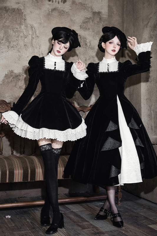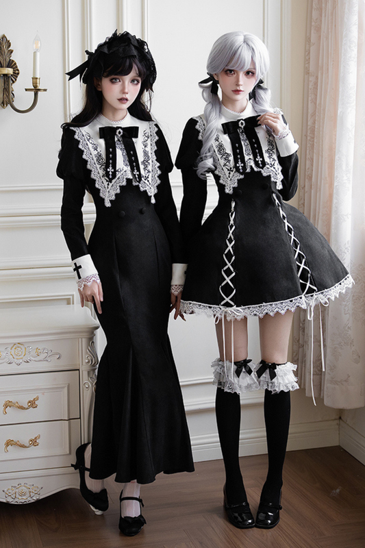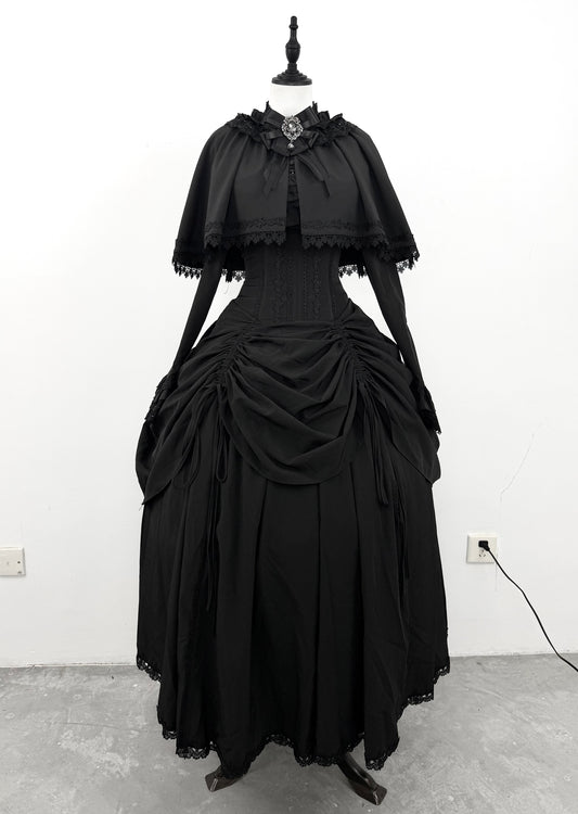 シックマーメイドドレス+レースアップショートドレス+マントコート+カラー+リボンブローチ