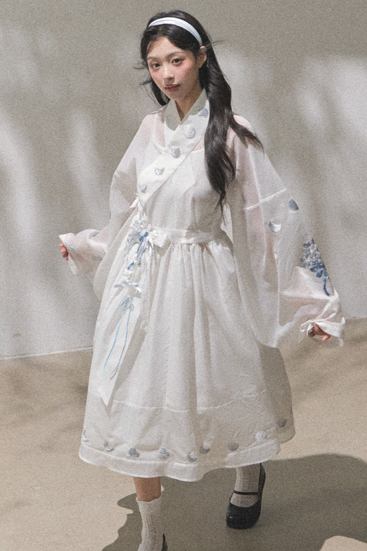 ピュアホワイトチャイナドレス+カバーエプロン+ベルト