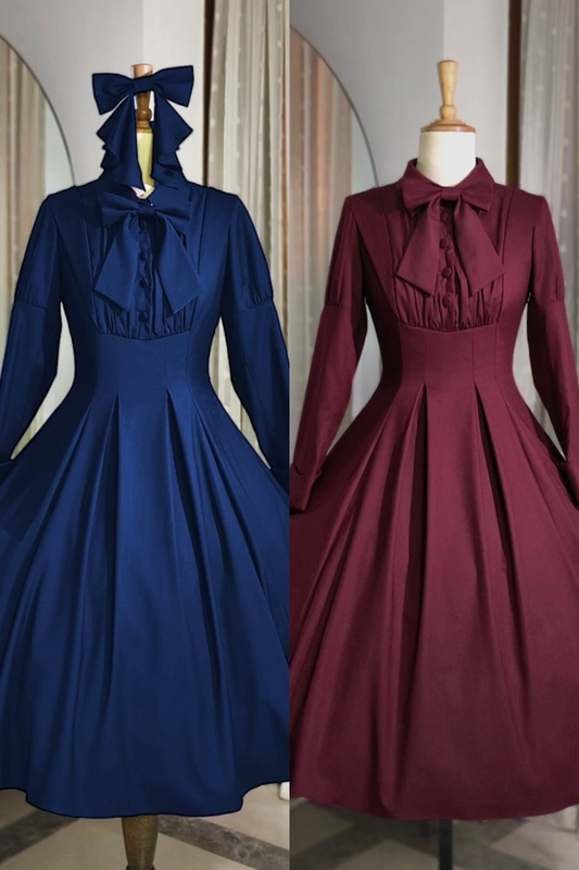 【12月9日予約締切】エレガントロングスリーブフリルリボンドレス