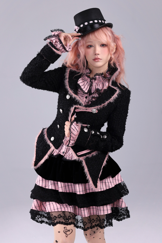 アップクロスカラージャケット+ショートジャケット+ドレス+ヘアバンド+リボン