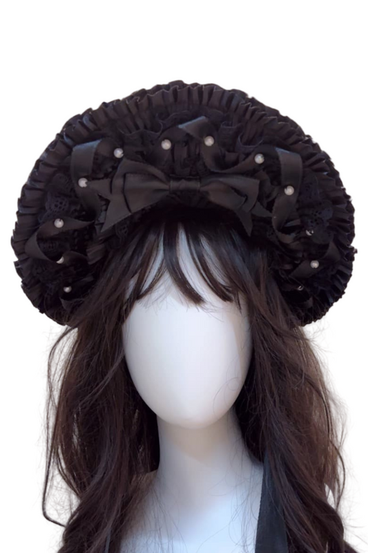 [Deadline for reservations: November 21] Night Cross Dark Elegant Gothic Lolita Pearl Ribbon Bonnet