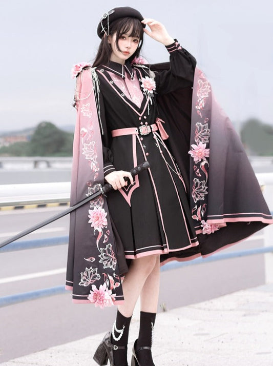 Dark Pink Military Cloak Coat + Lolita Dress [Reserved Item].