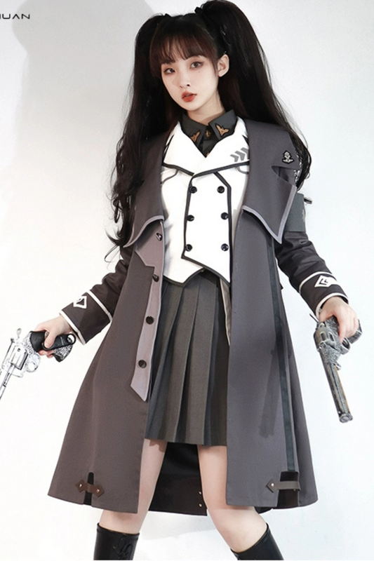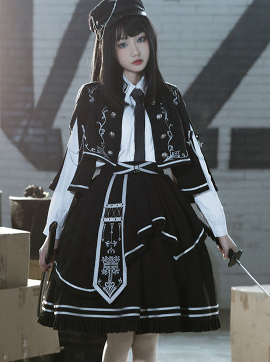 Military Uniform] Dark Army Mantle + Shirt + Asymmetrical Skirt