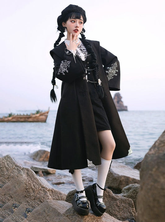 Coat vest dark gothic wool cape jacket handsome Lolita design