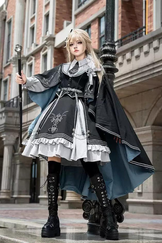 Real Aigothic Style Lolita Dress + Cape + False Collar