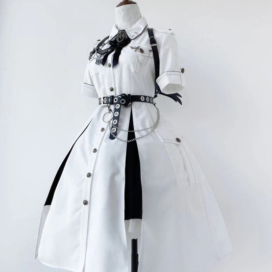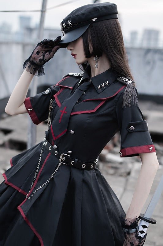 Military uniform] Hard Rosary Dress with Tie + Eyelet Belt