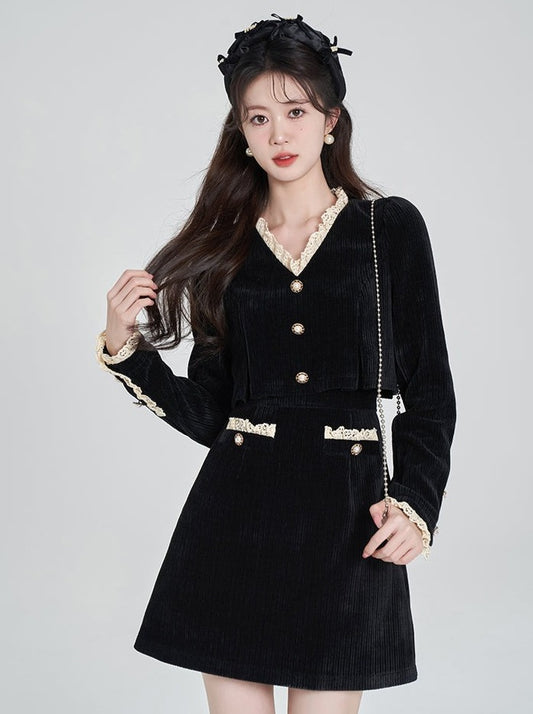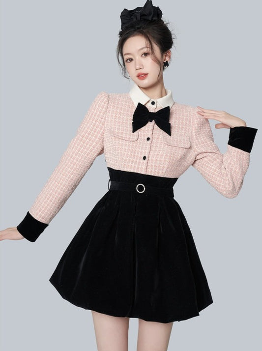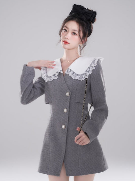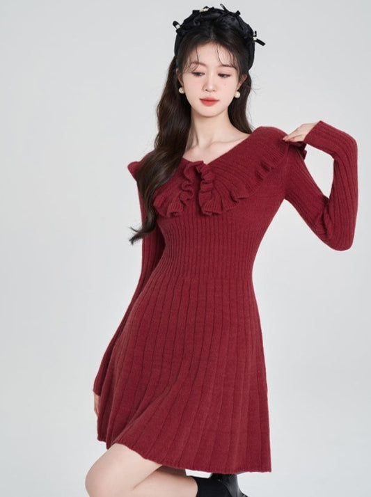 Sweet High Neck Flying Sleeve Knit Dress + Leg Warmers