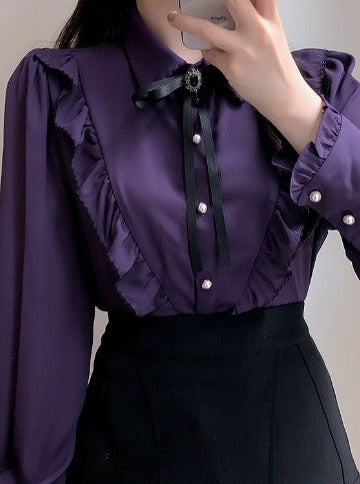 Sweet Idol College Jacket + Ruffle Shirt + Ribbon Flared Skirt