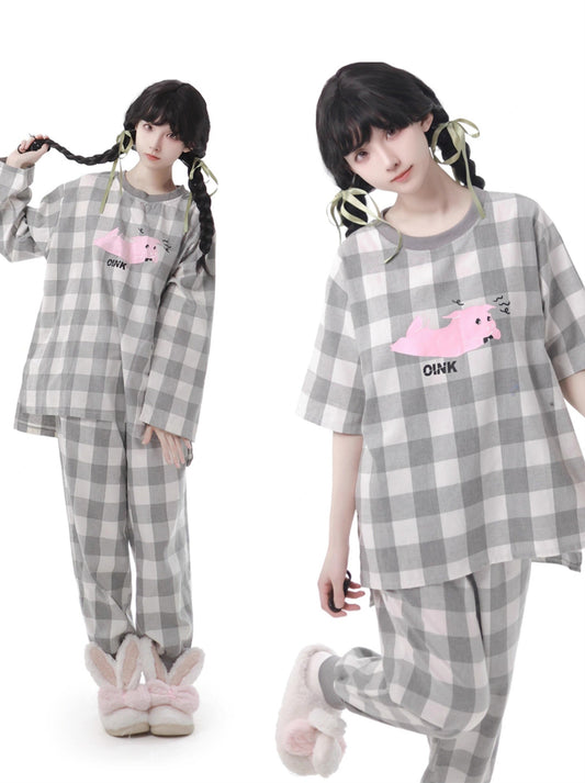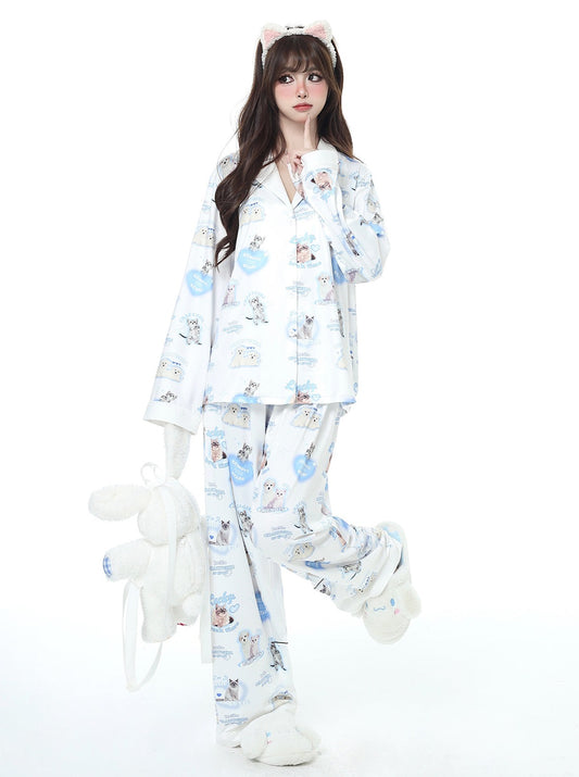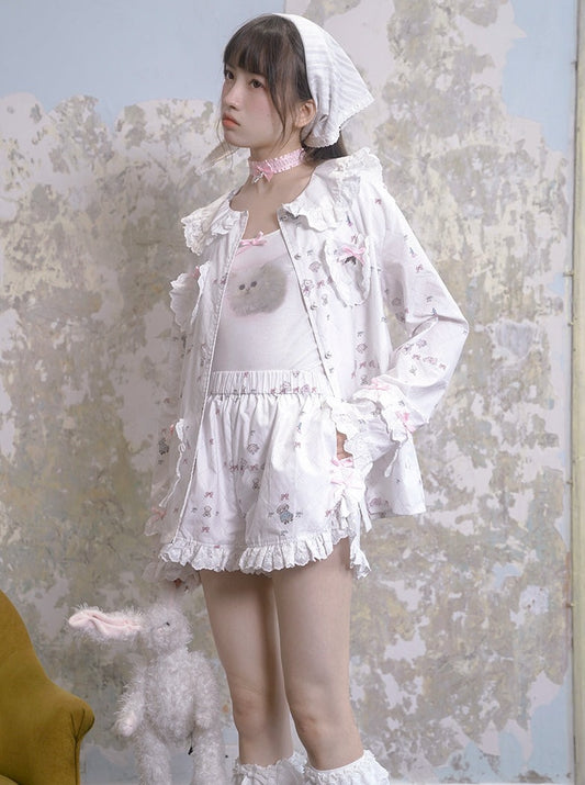 Milky Hearts Cute Print Ribbon Home Middle Loungewear