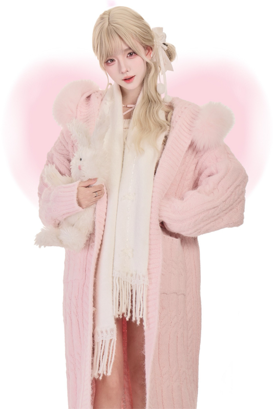 Little cute flower hooded parka + ribbon camisole + wide pants