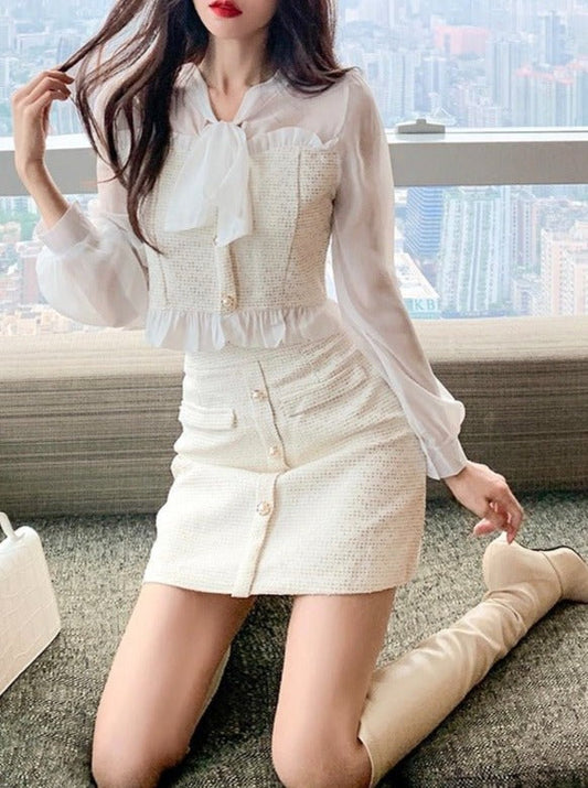 Floral Sweet Ribbon Jacket + Tight Skirt