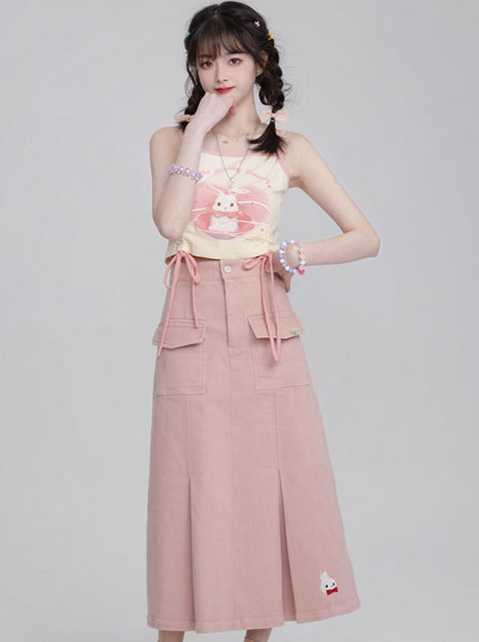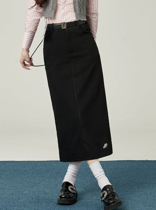 Little Butterfly Rice Slim Denim Long A Line Skirt