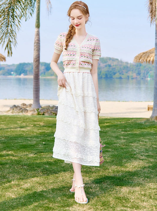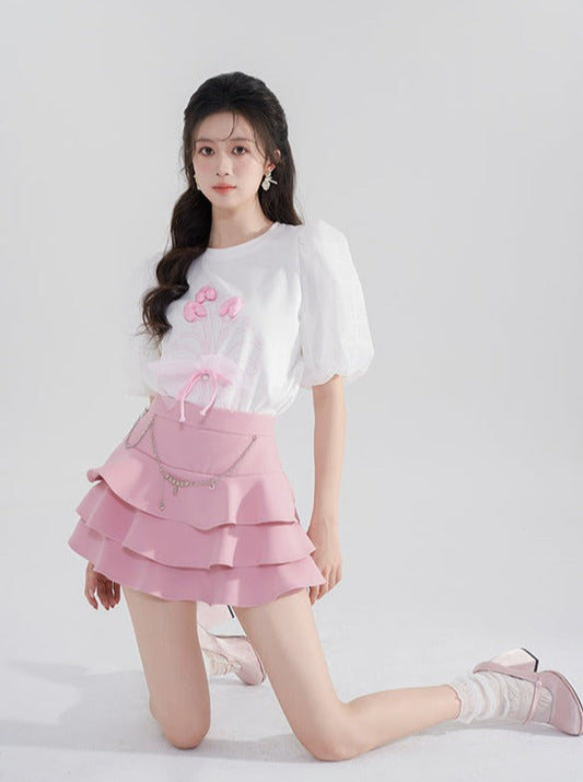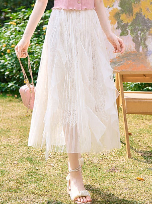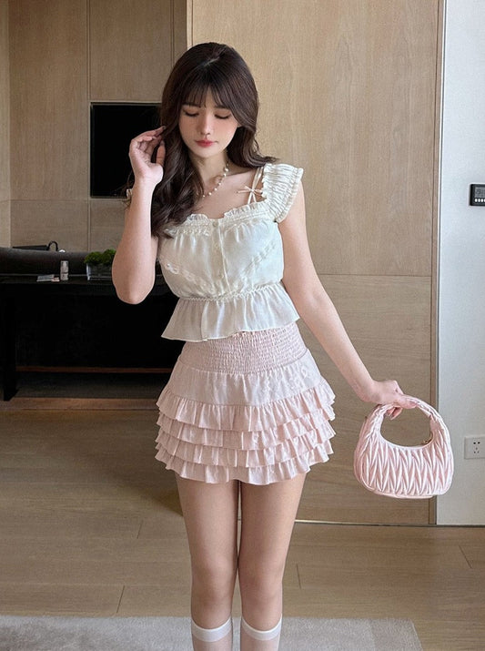 Diamond Frill Cute Flare Layered Quilting Skirt