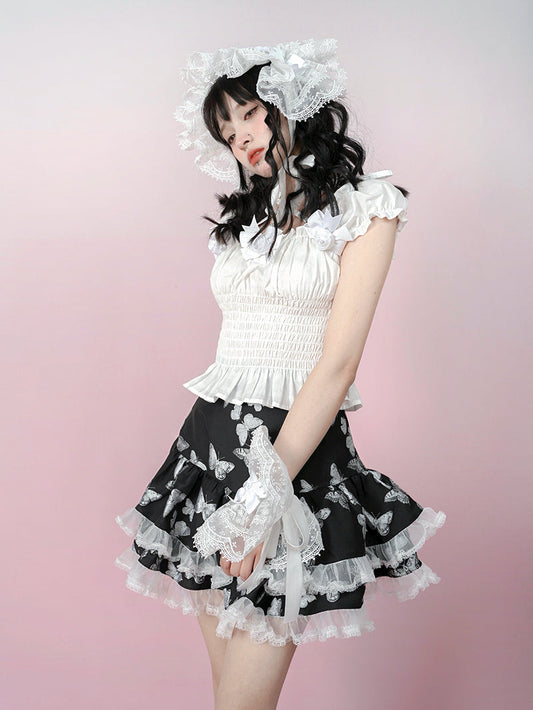 Butterfly Cross Jacquard Denim Lace Short Skirt