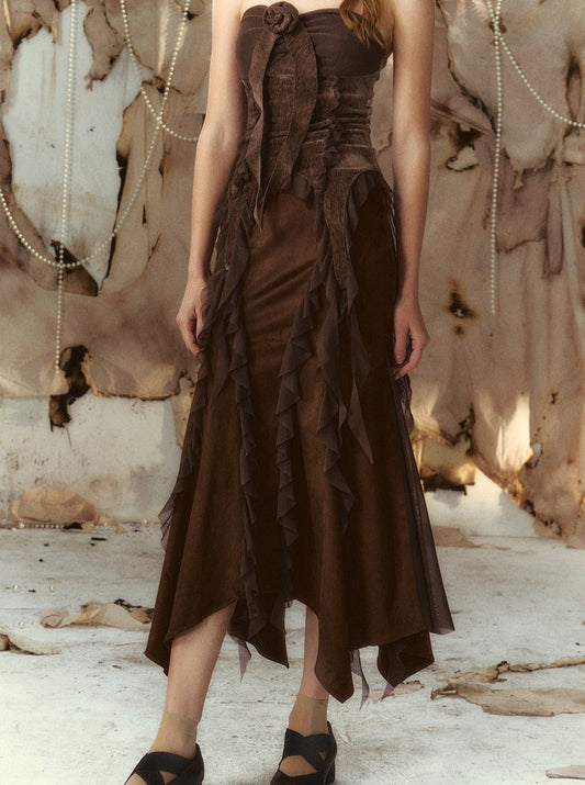 Maillard Suede A-Line High Waist Fishtail Skirt