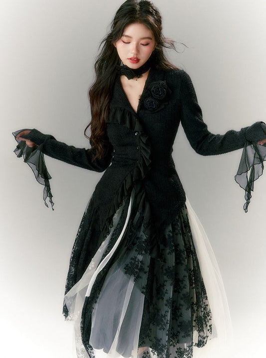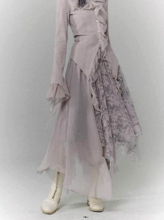 Flower Irregular Long Gauze Skirt