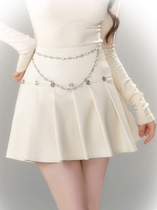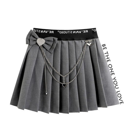 Pleated skirt with jewel heart chain strap