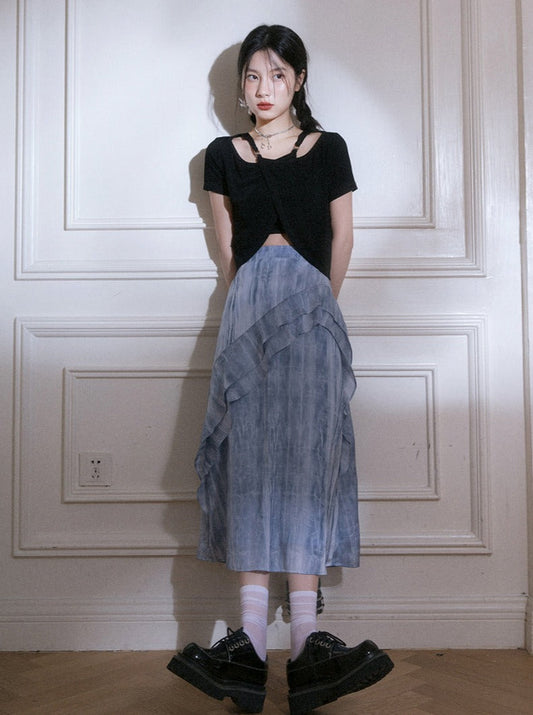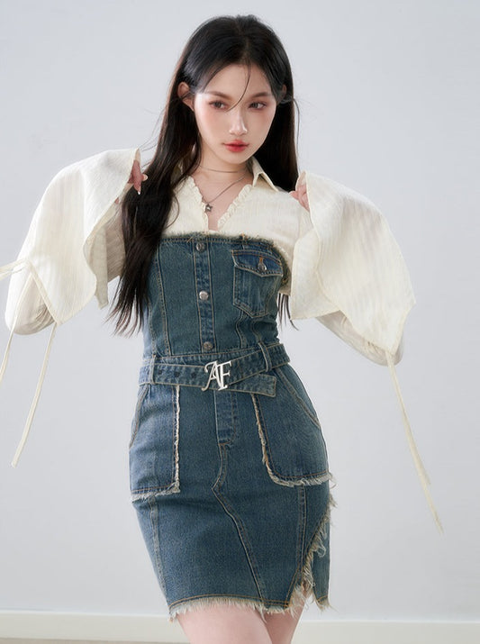 Washed Tube Top Denim Skirt