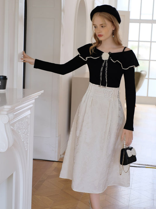 French Retro Design Waist Skirt