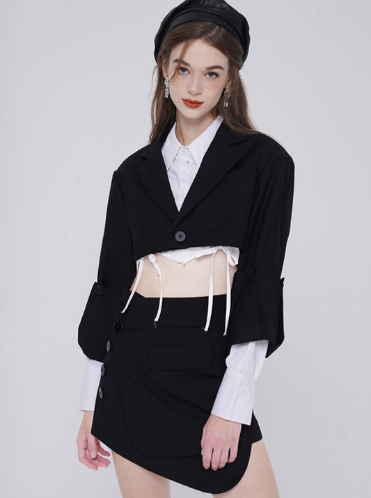 Antique high-end tailored leather jacket + skirt