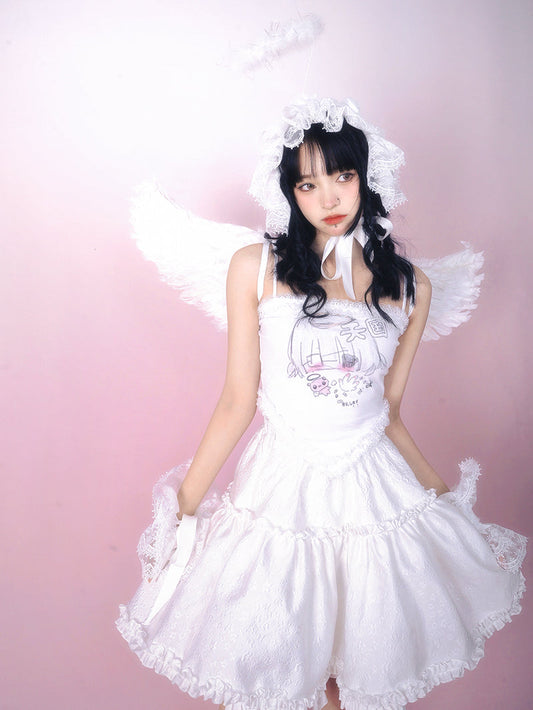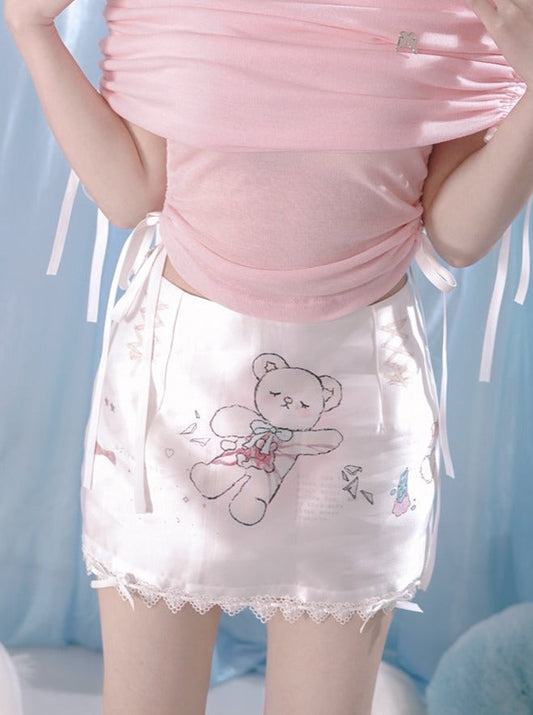Sweet Bear Angel Girl Illustration Skirt