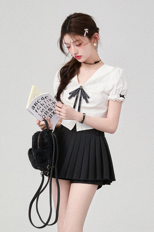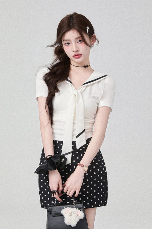 Sailor Kara Sweet Bow Knit Top + Black Skirt