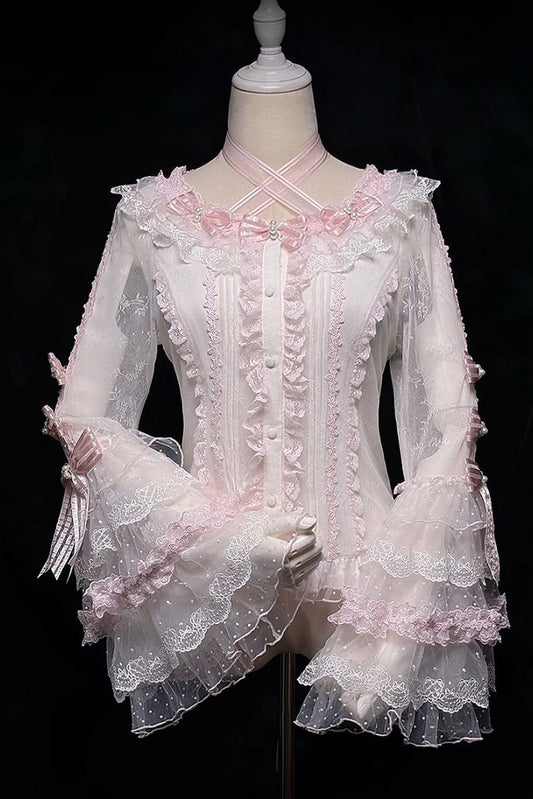 【12月26日予約締切】ピュアスイートローズファンタジークロスリボンレースベルスリーブシャツ