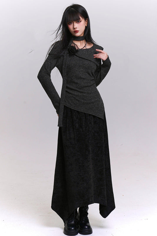 【1月3日予約締切】Return of the Witchesダークゴシックローズラッフルトップス+プルアップコルセットスカート