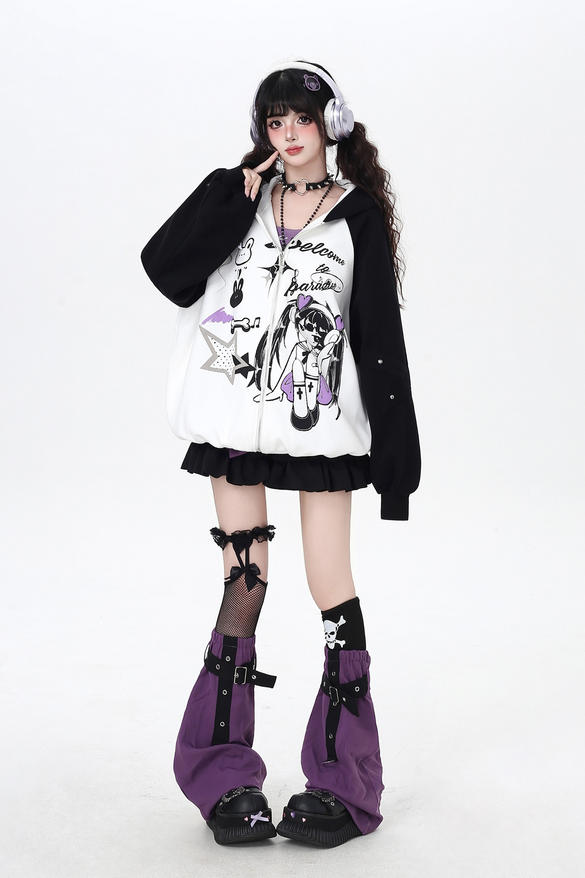 Dark Cute Loose Zip Hooded Hoodie