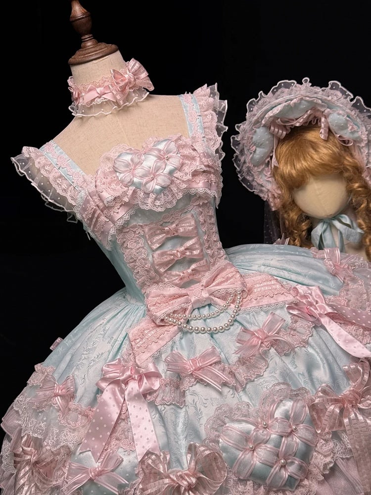 ドレスのバックテールリボン・ボンネット・チョーカー・インナートップスは別購入できます