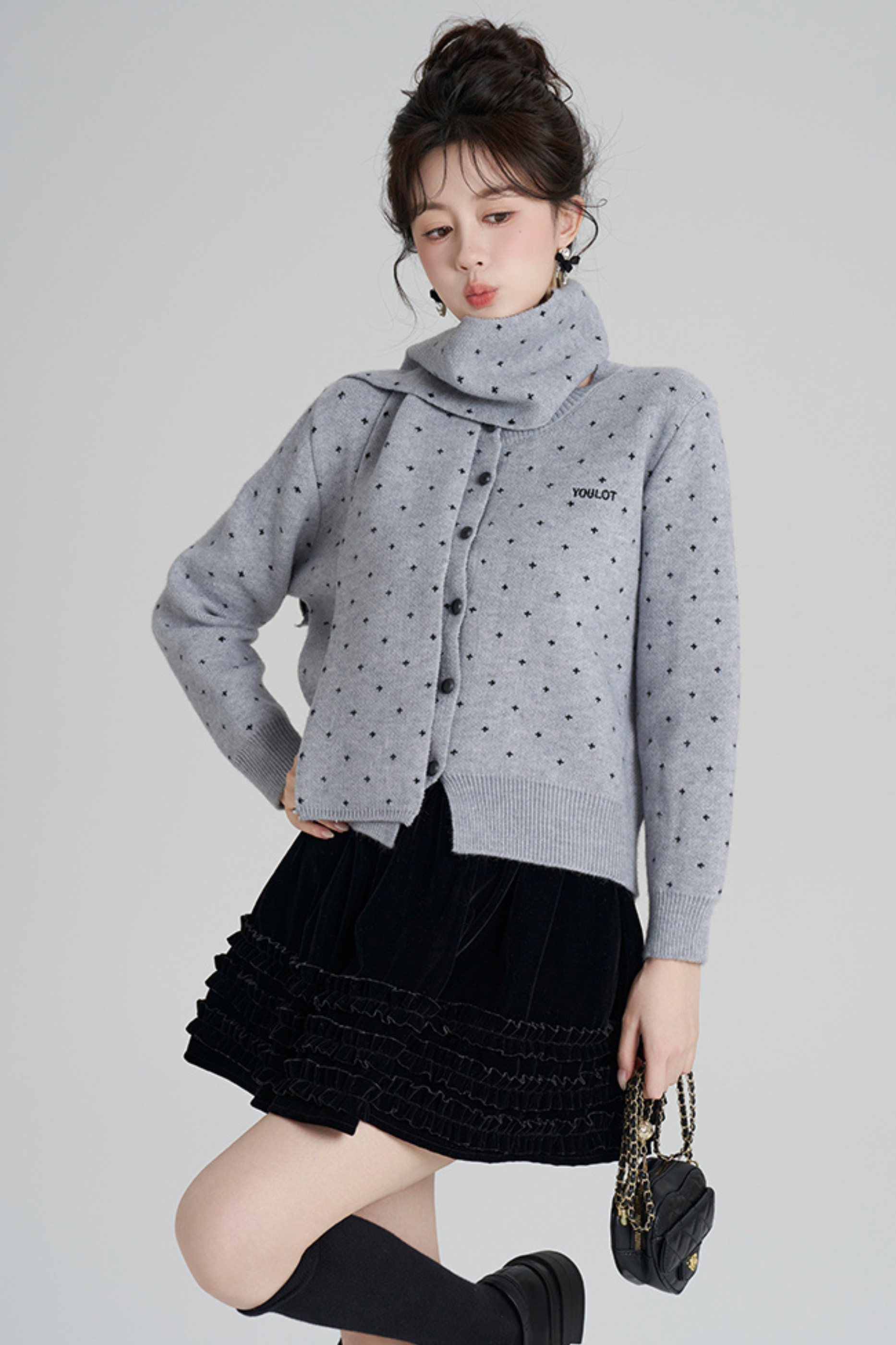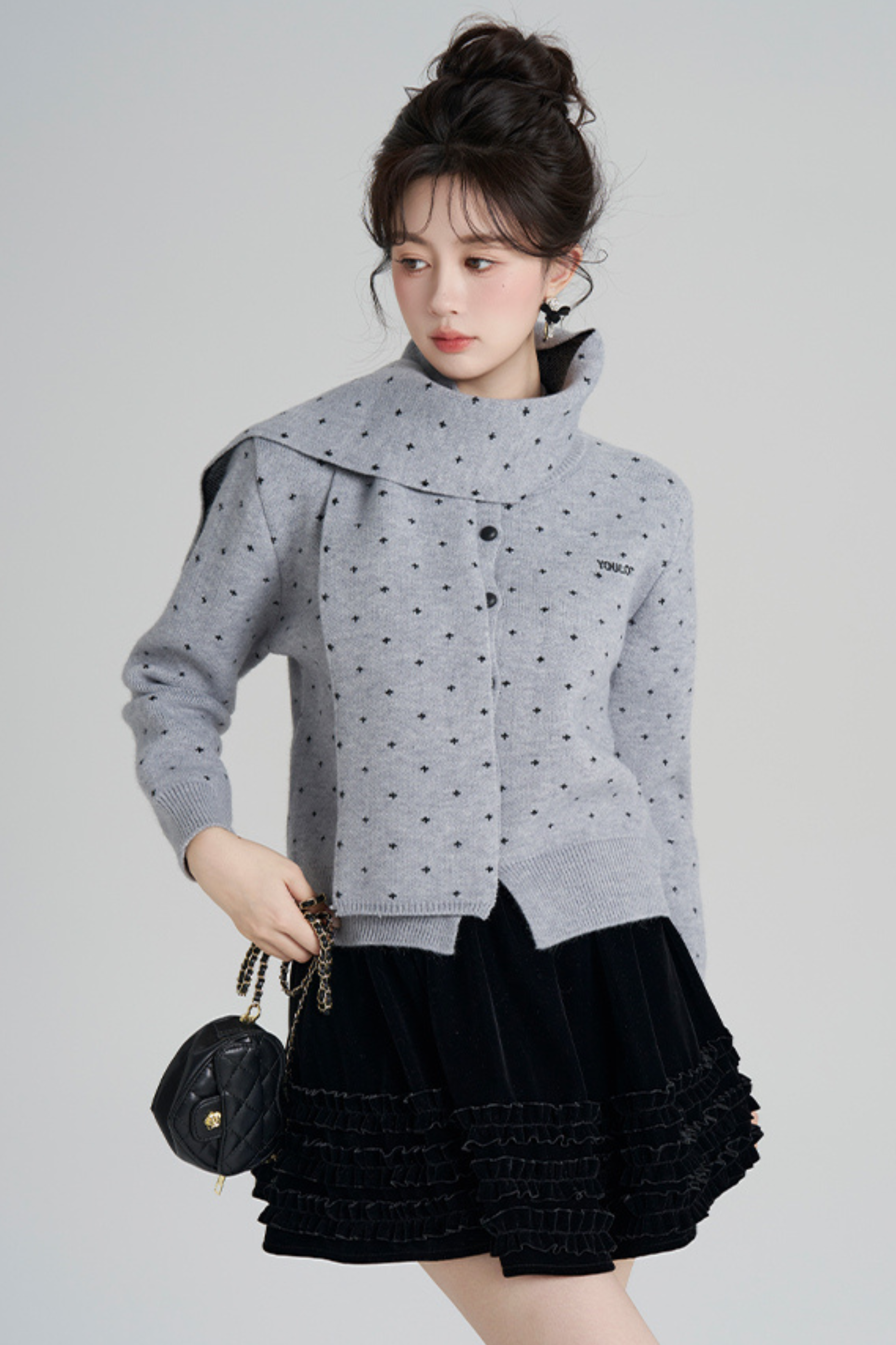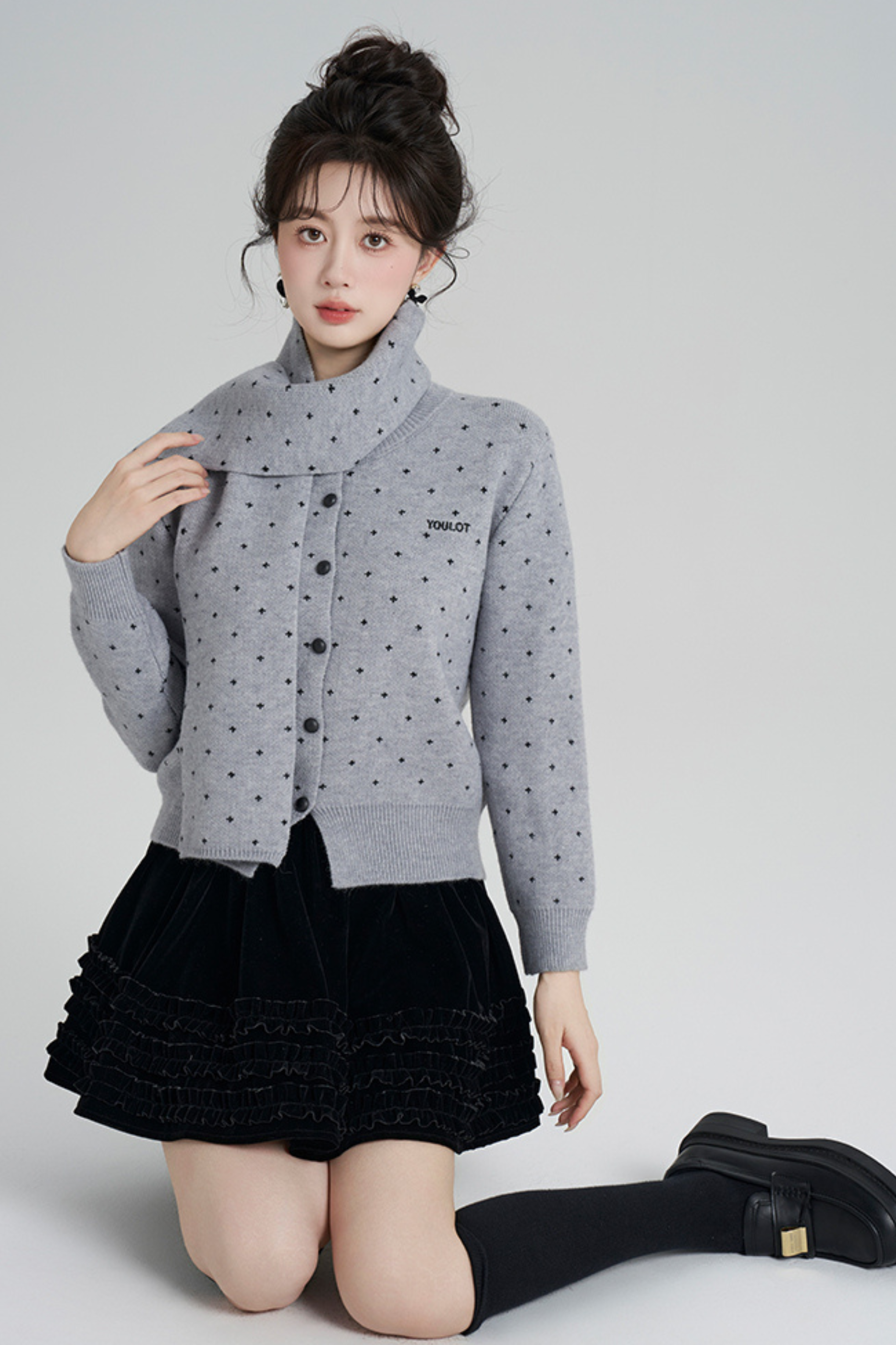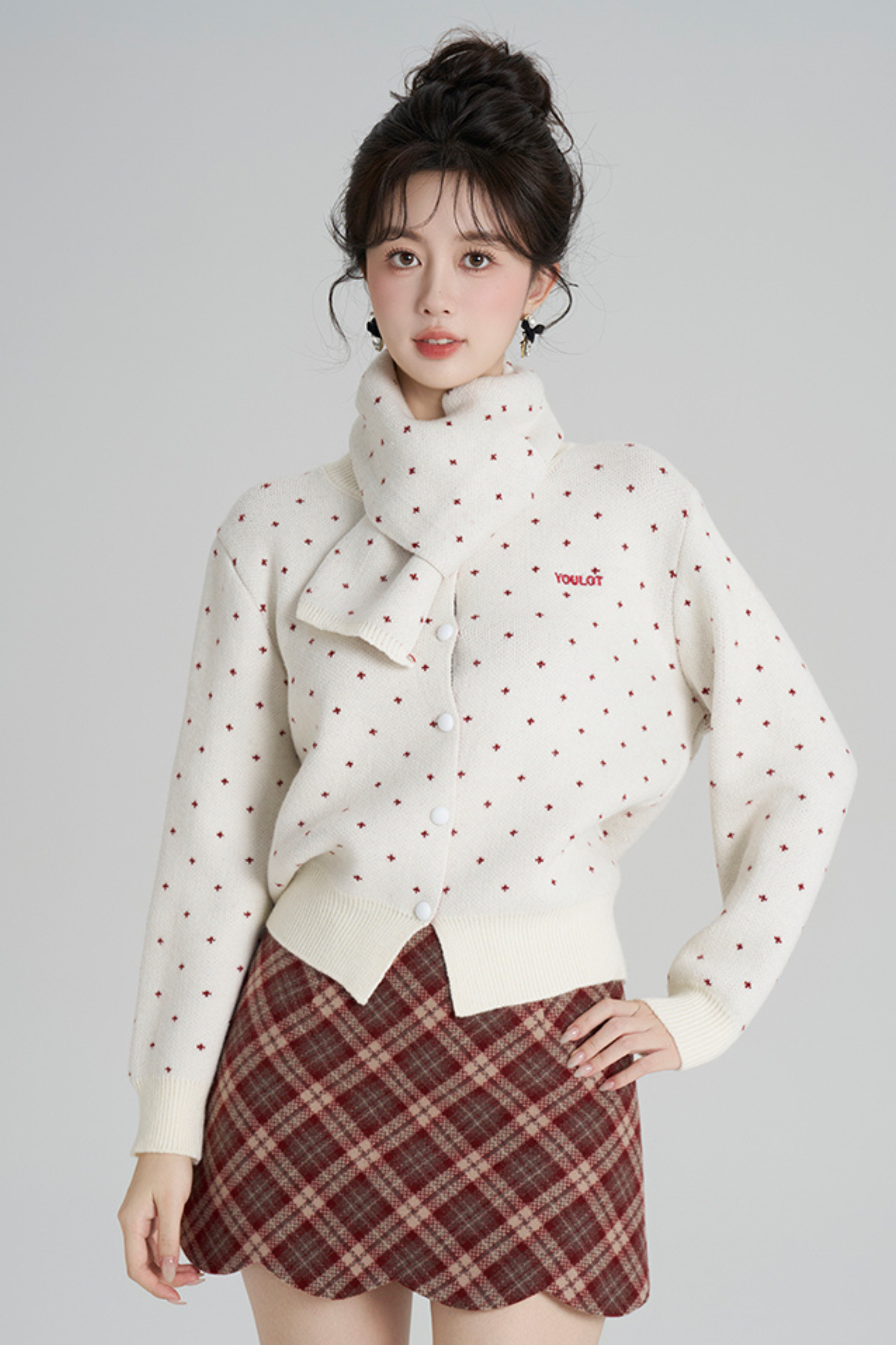 ❤フレンチスタイルドットマフラー付きンカーディガン❤