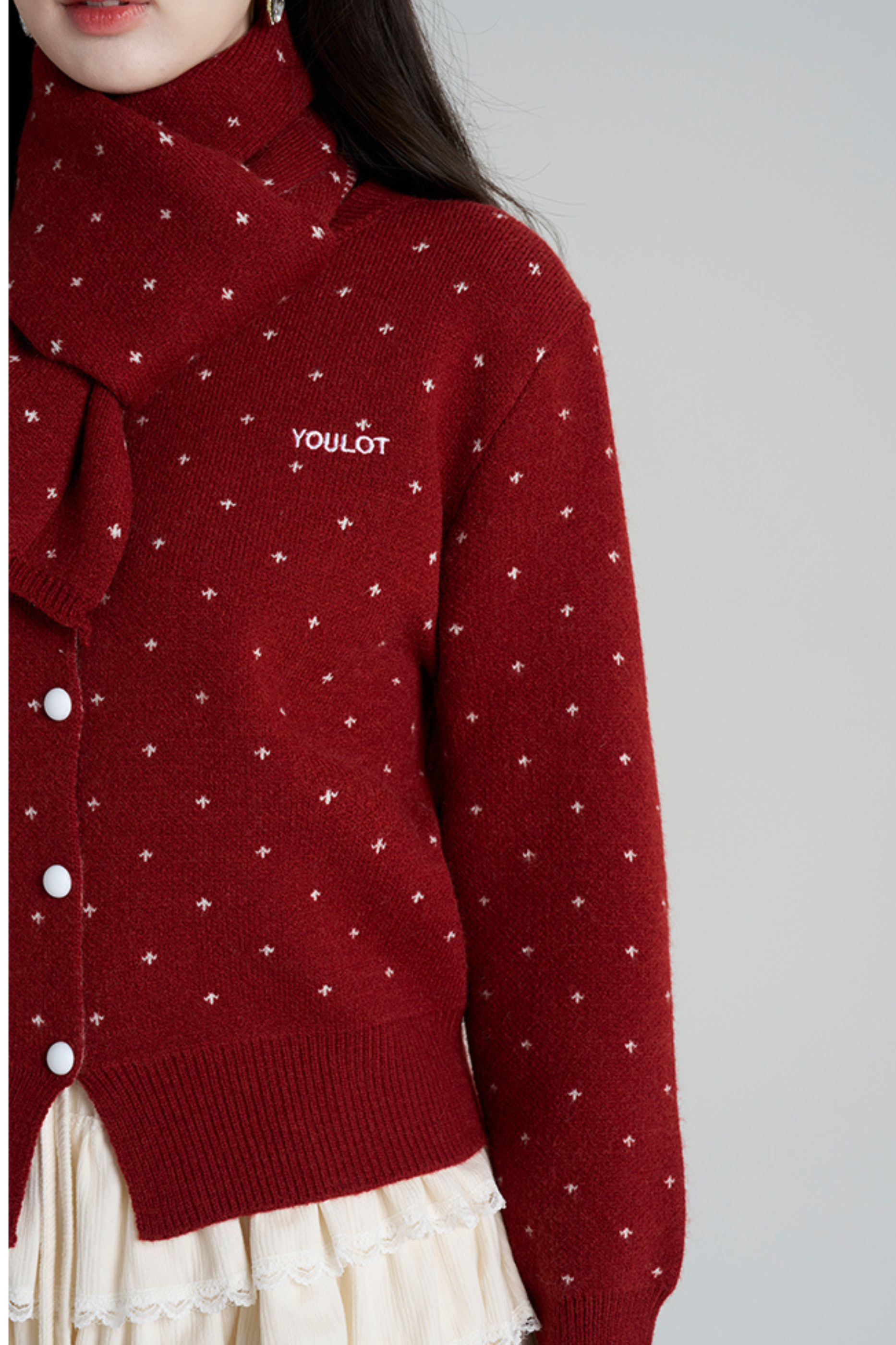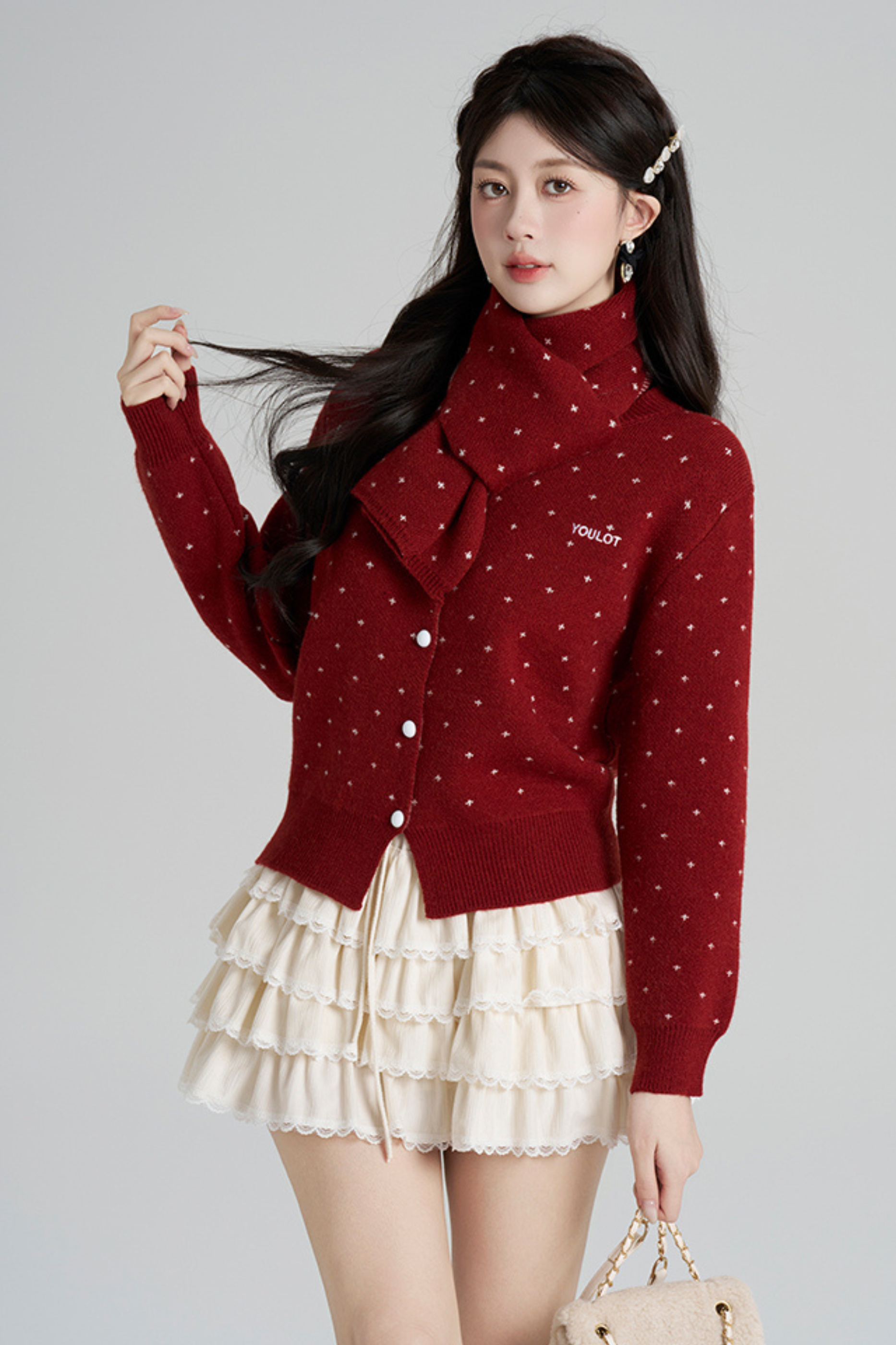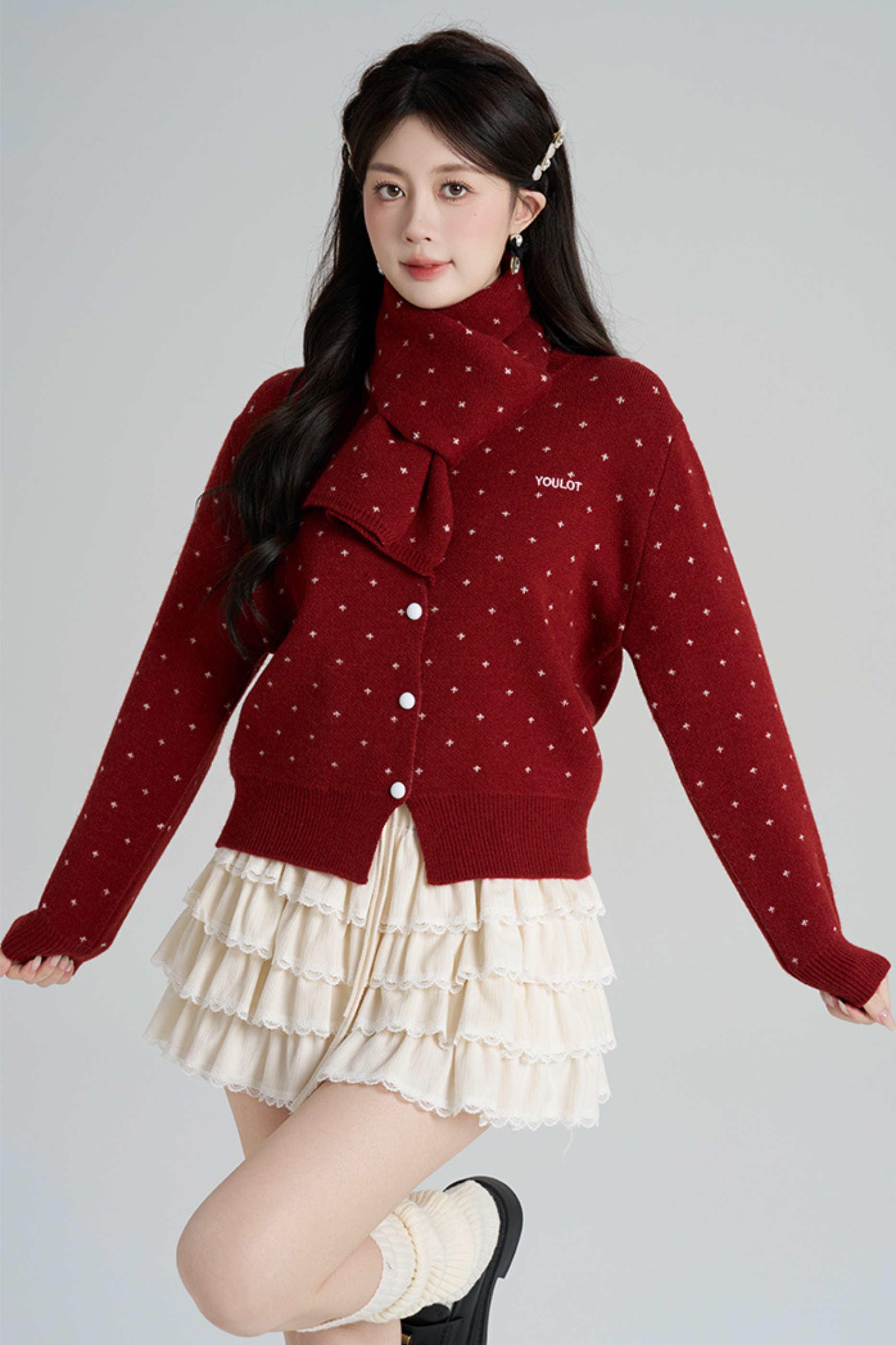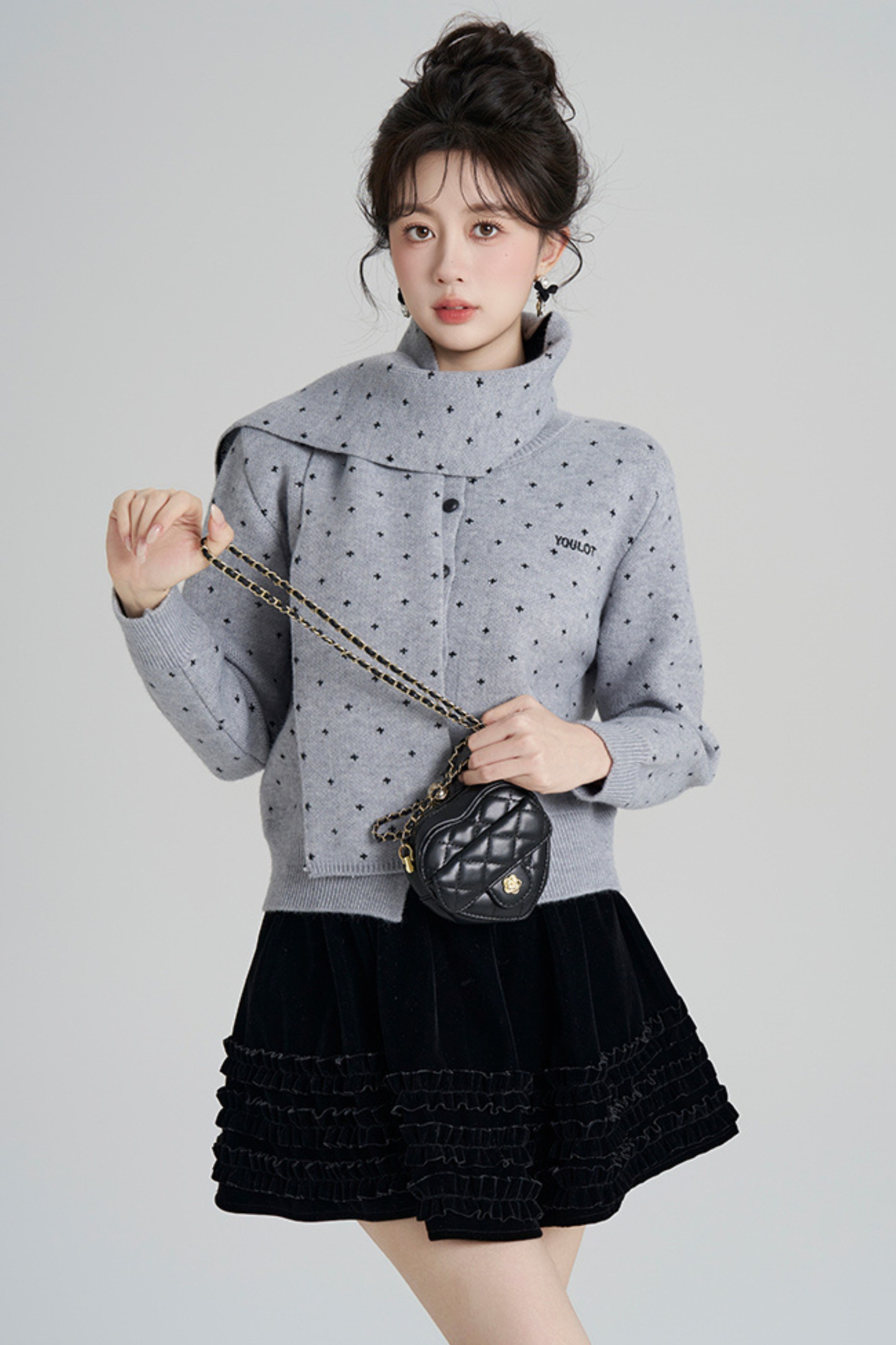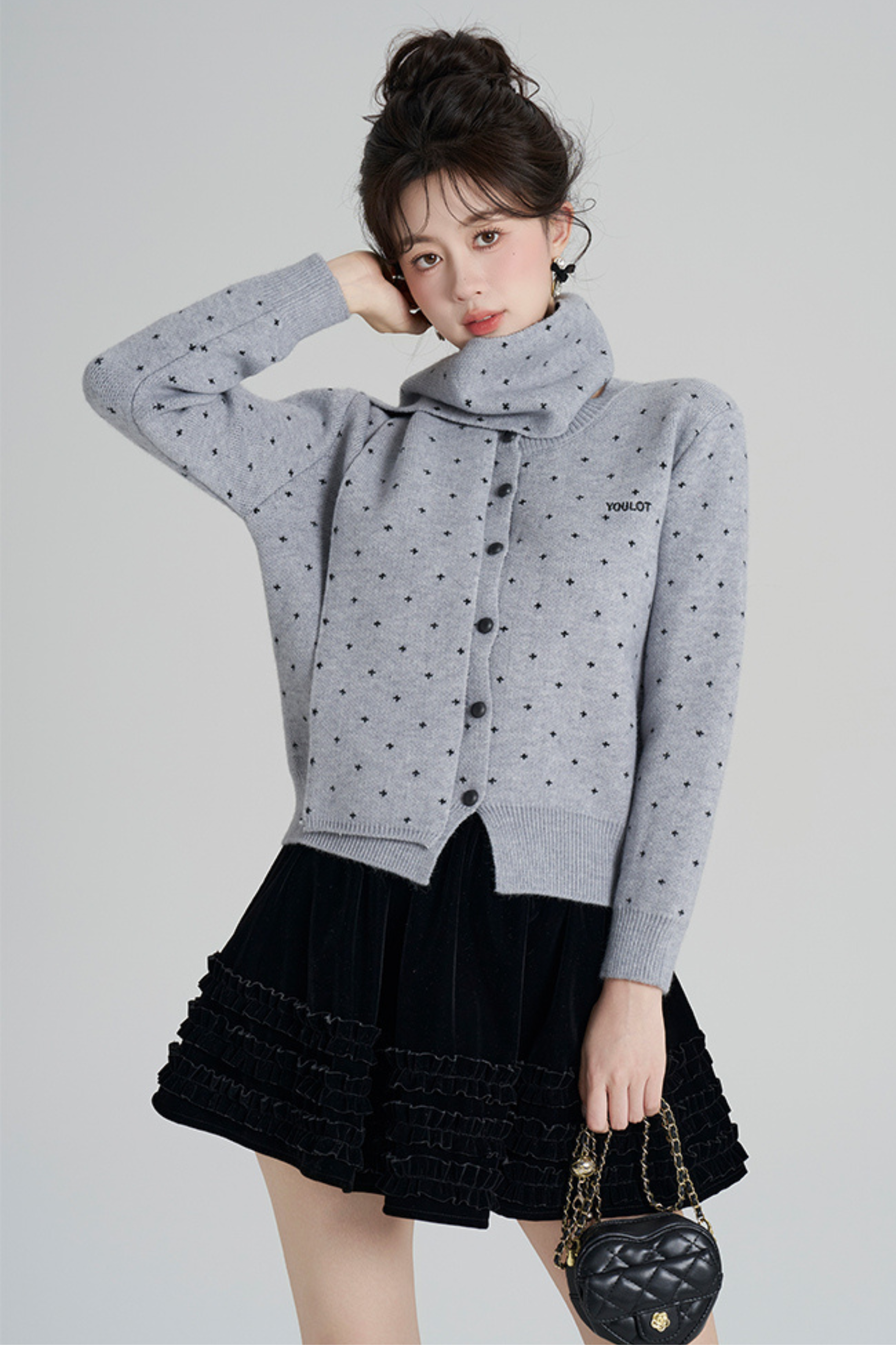❤フレンチスタイルドットマフラー付きンカーディガン❤