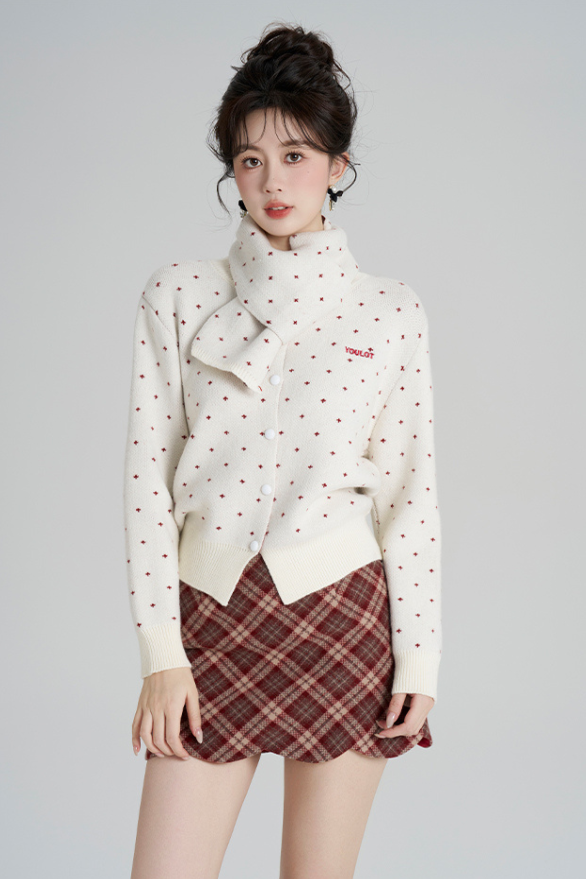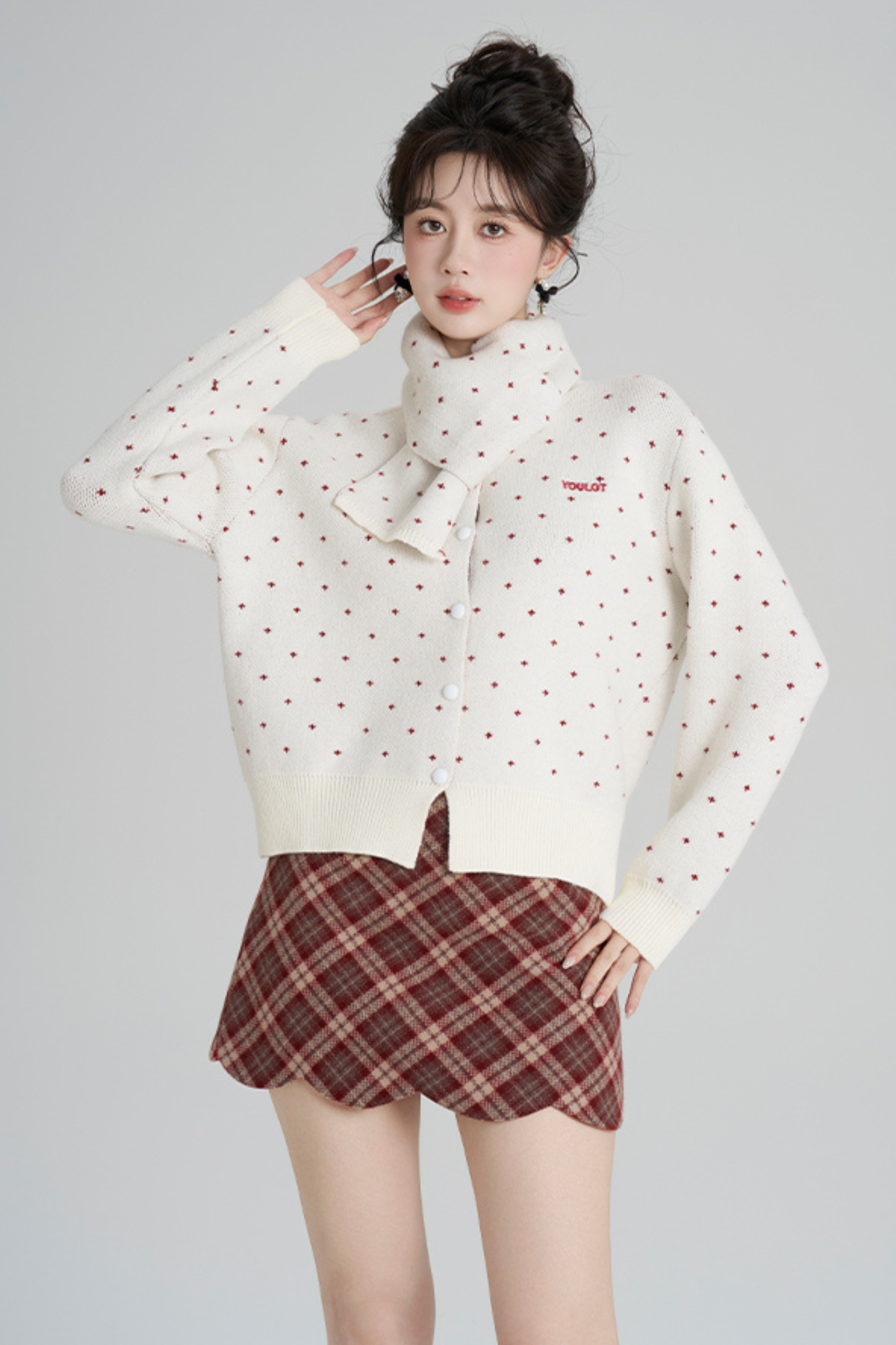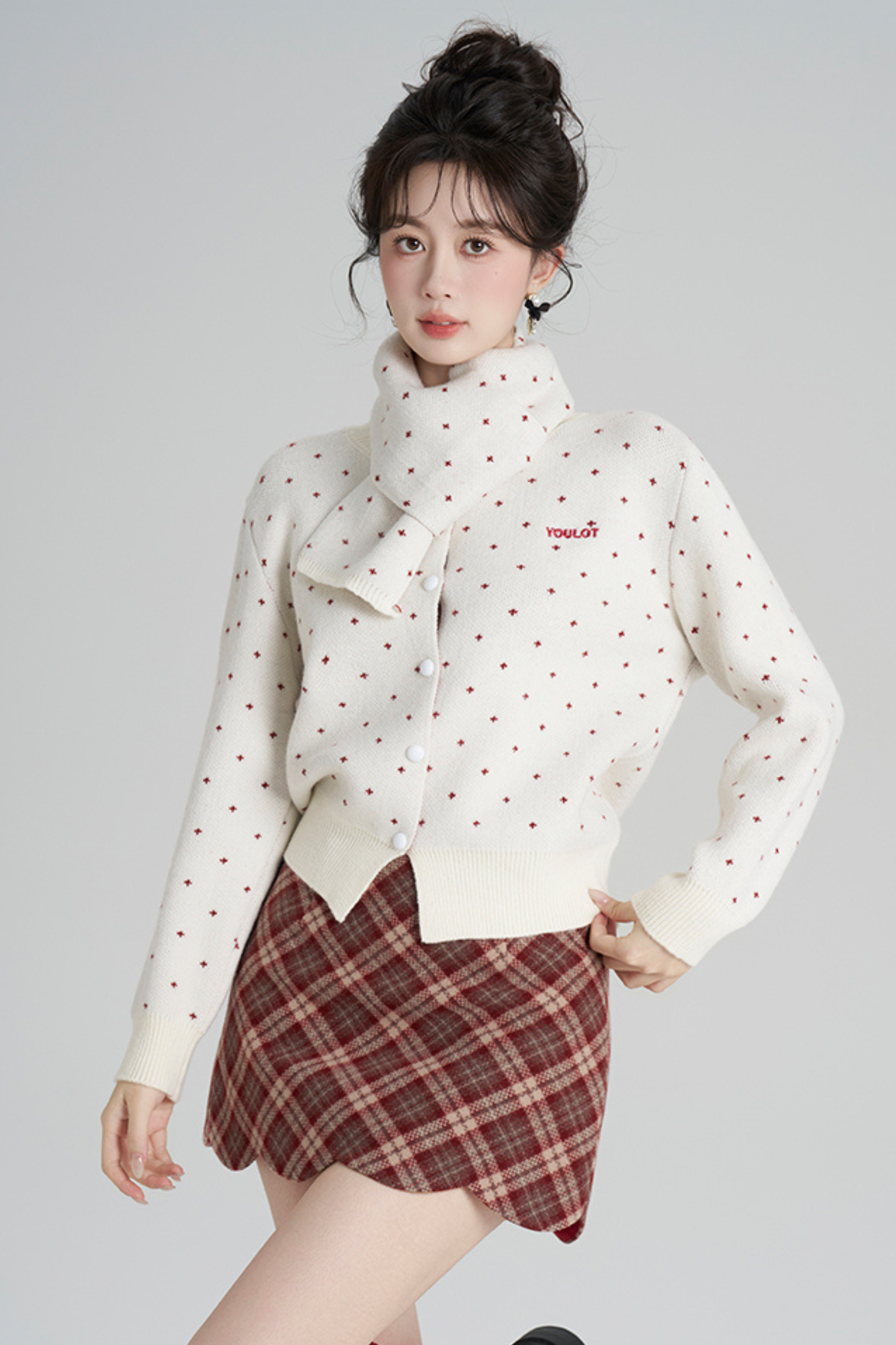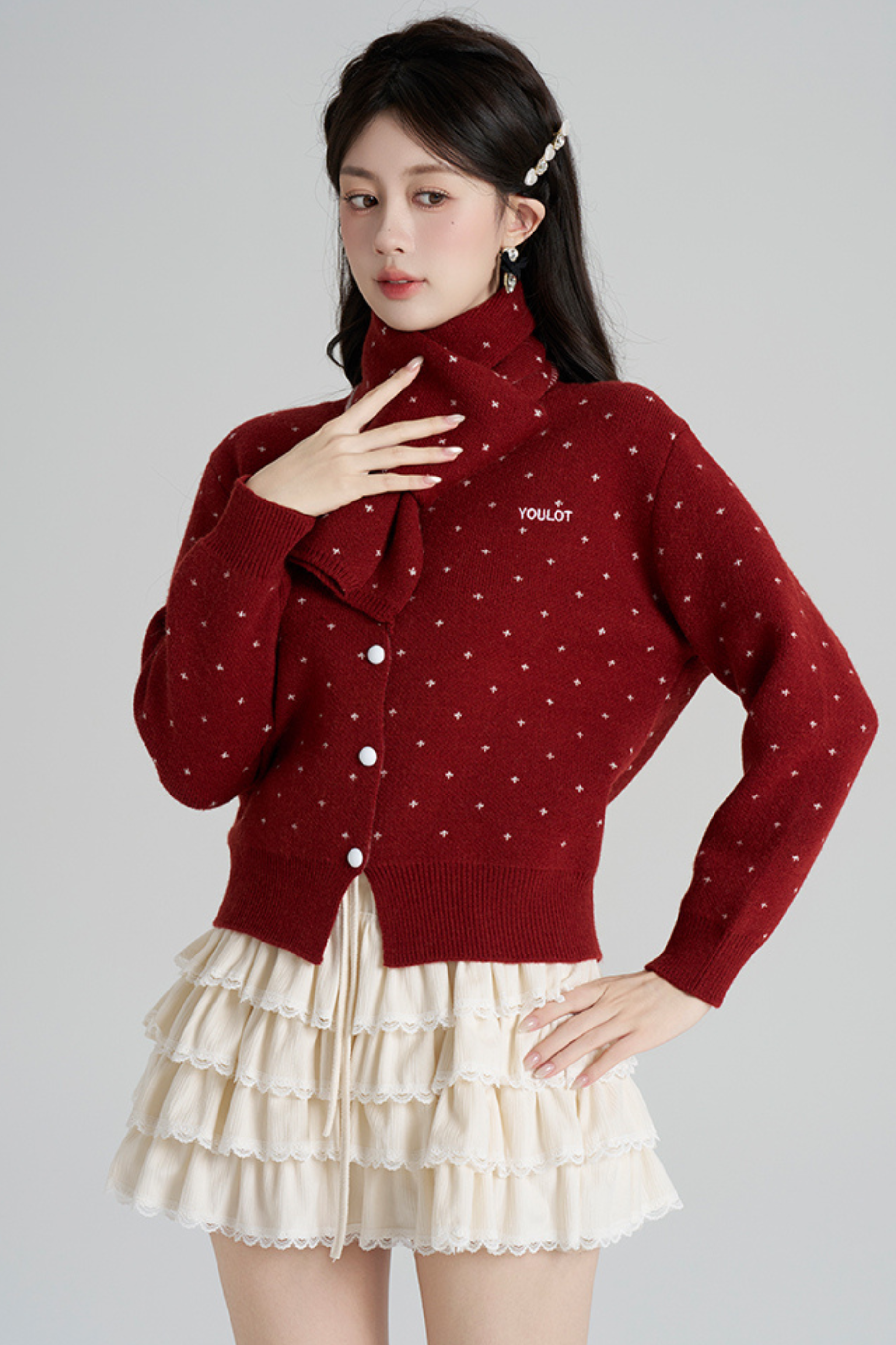 ❤フレンチスタイルドットマフラー付きンカーディガン❤