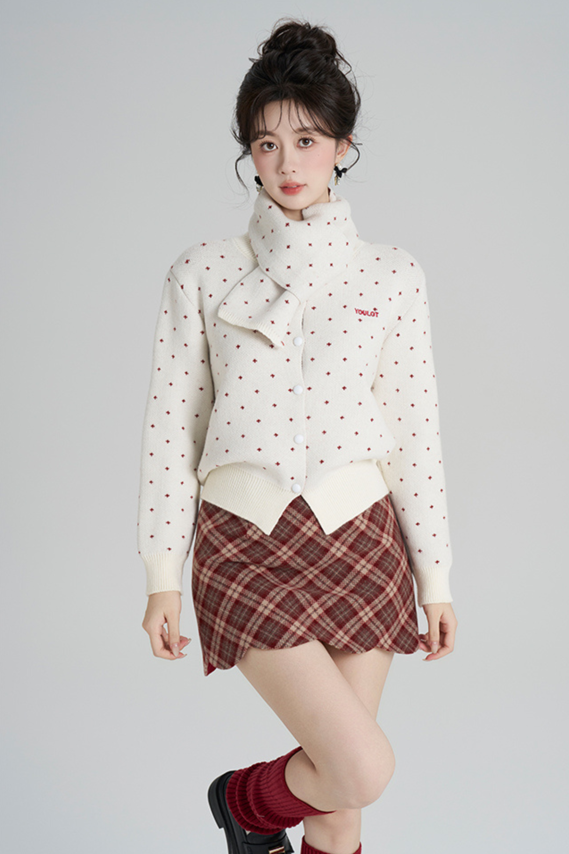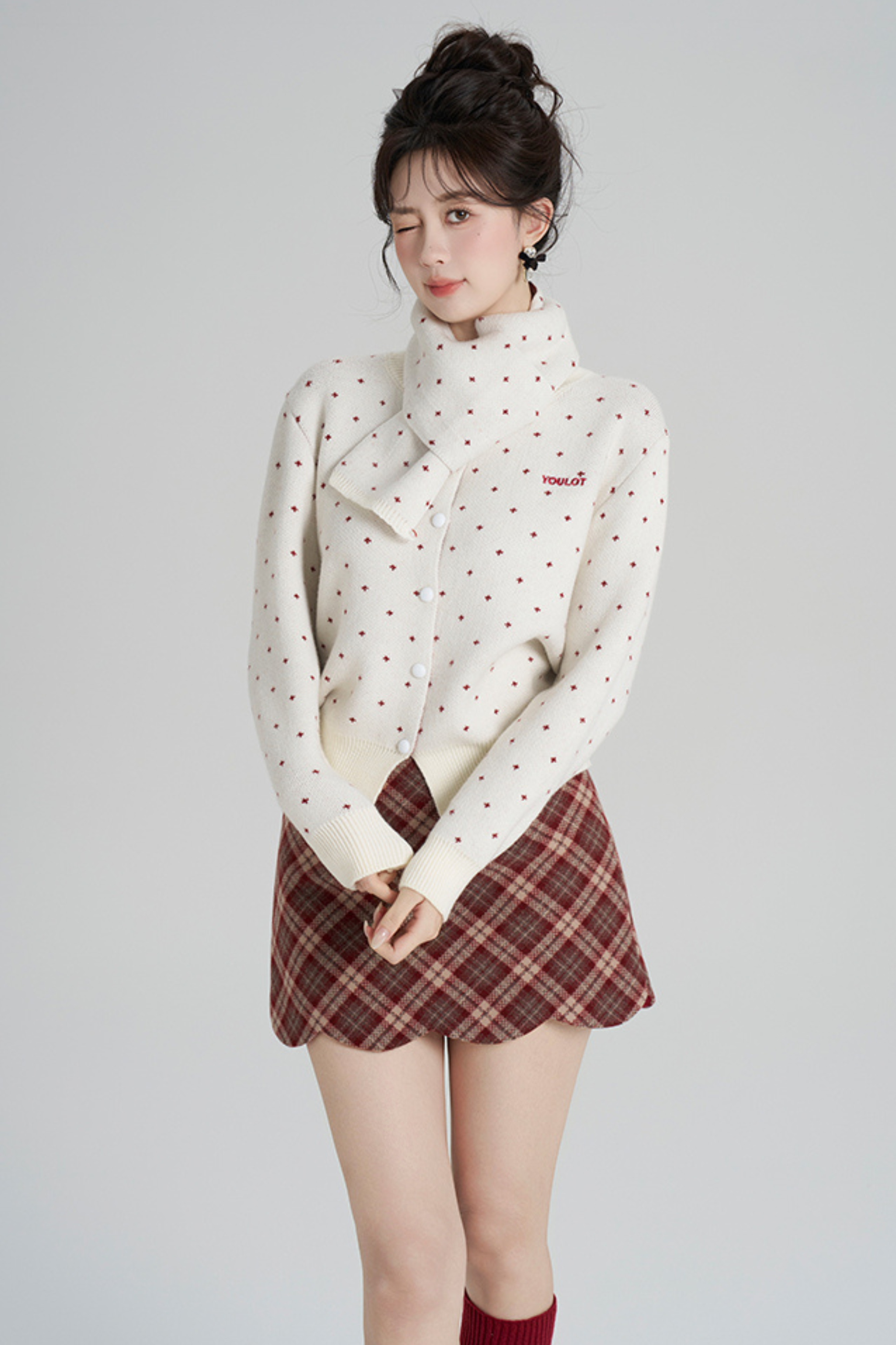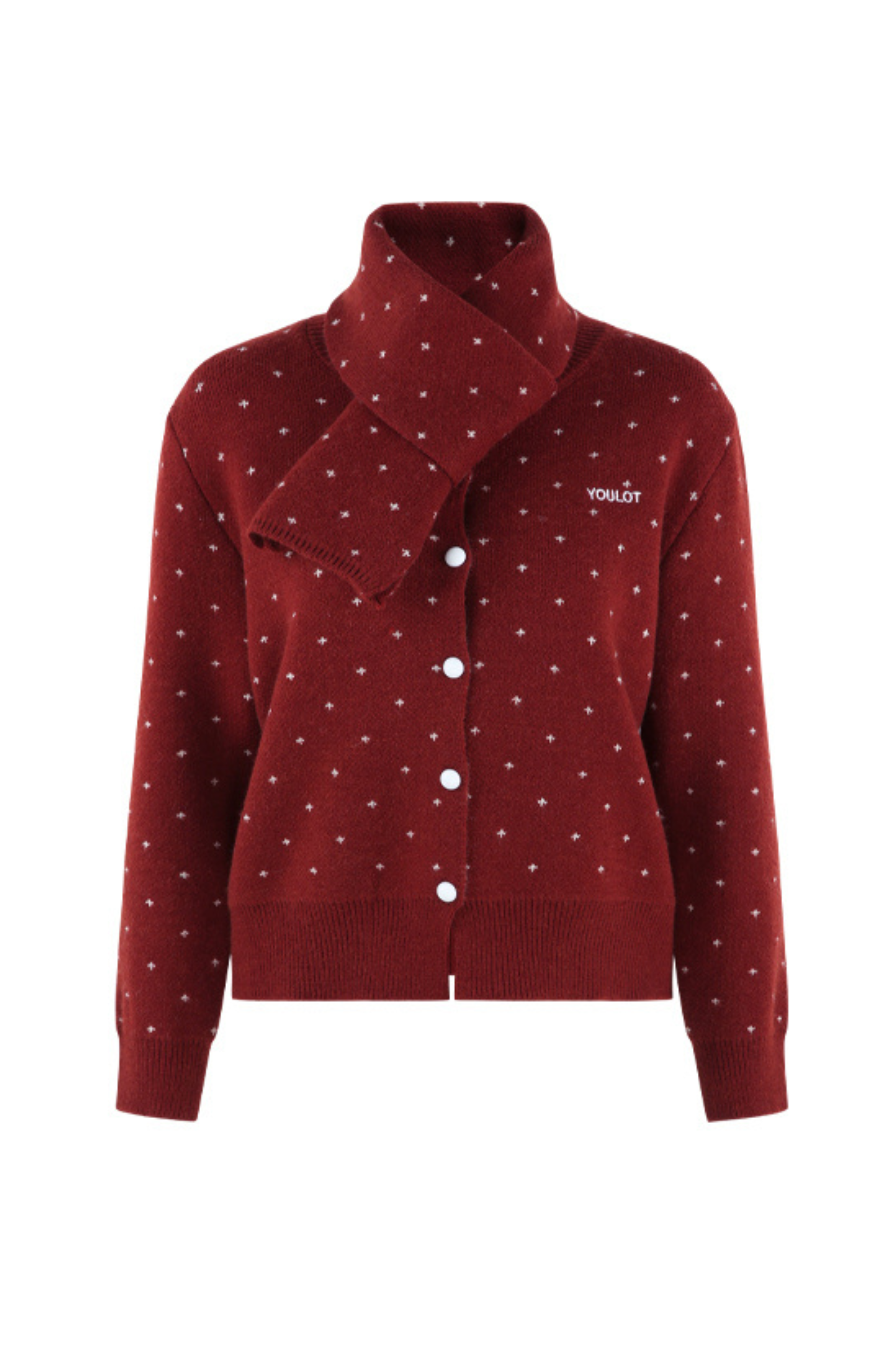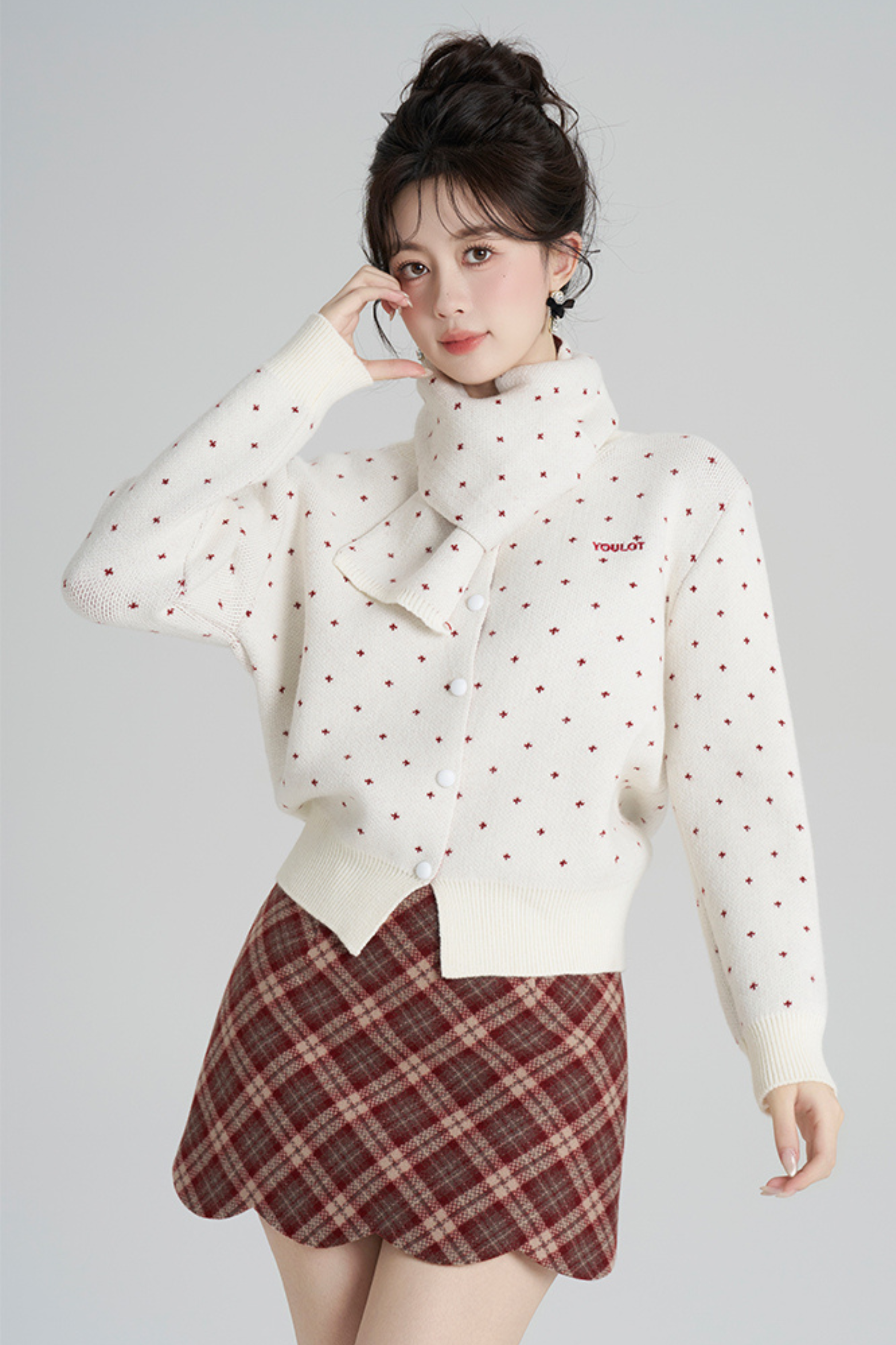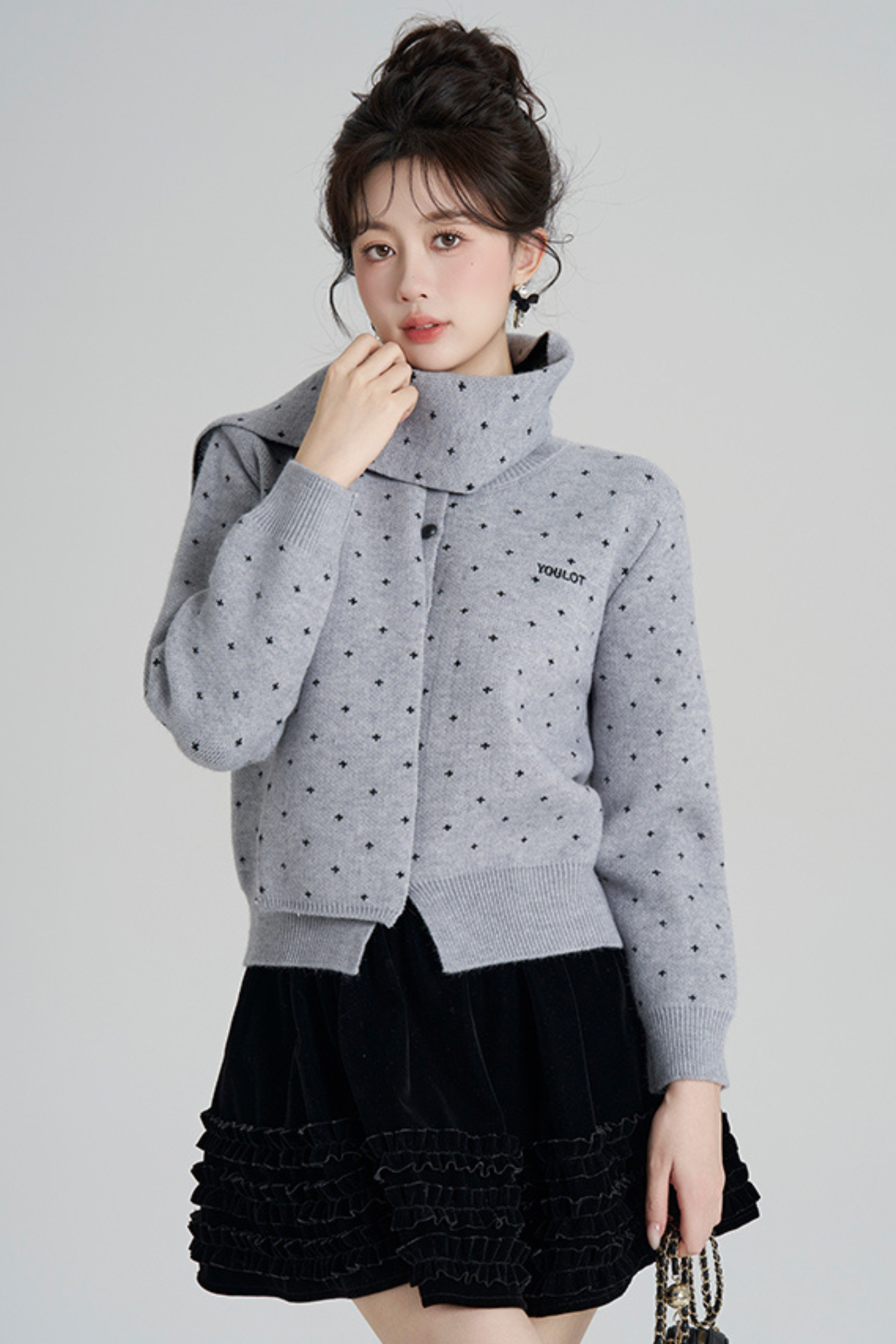 ❤フレンチスタイルドットマフラー付きンカーディガン❤