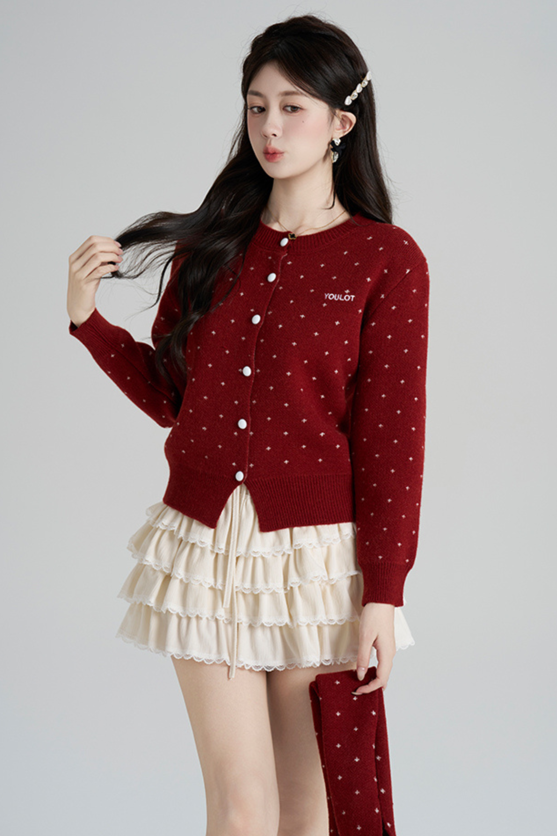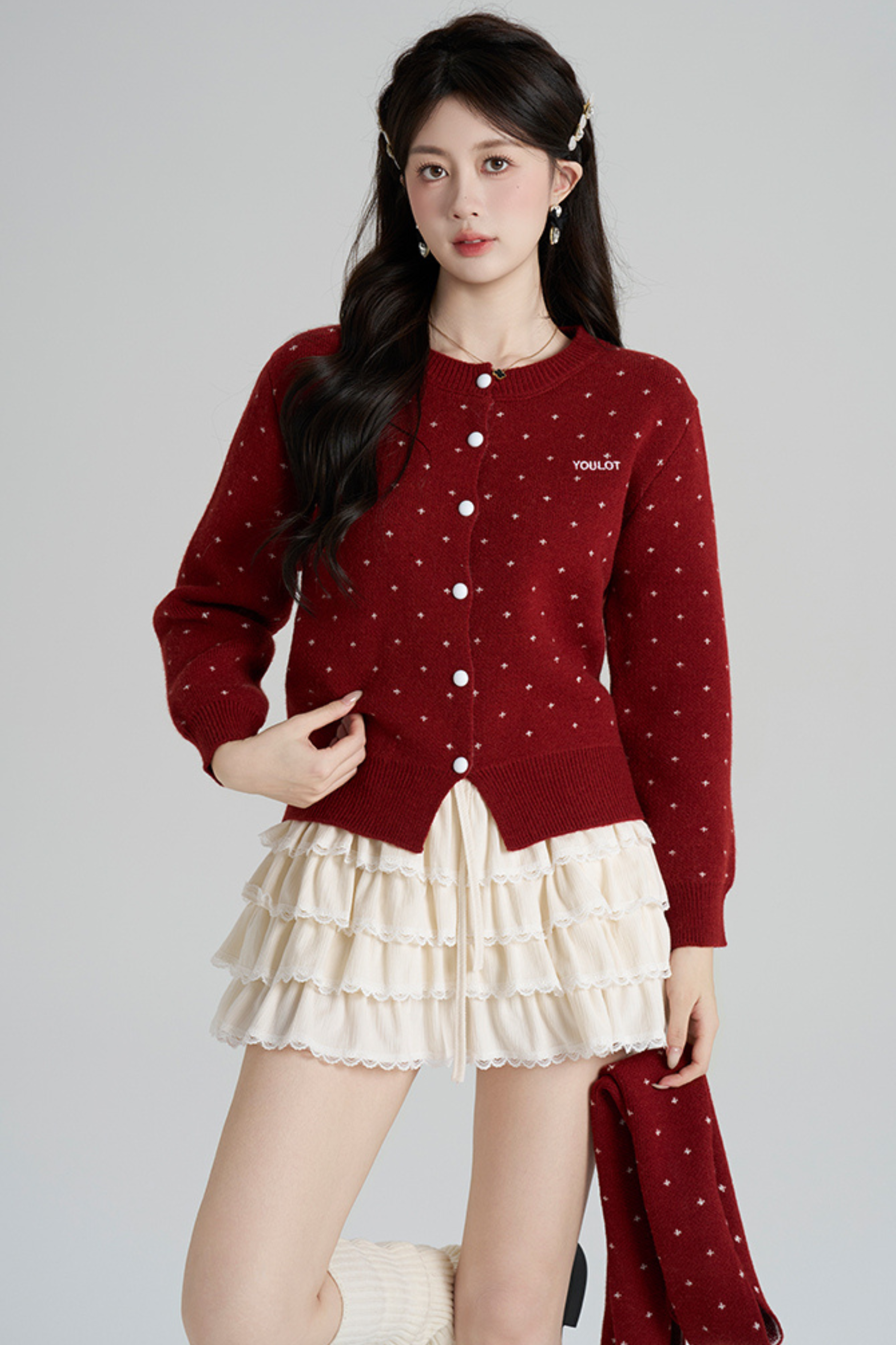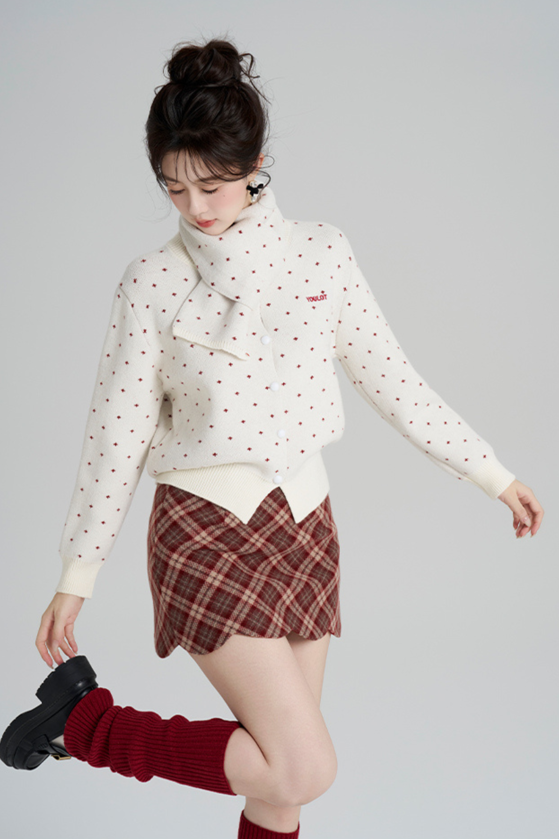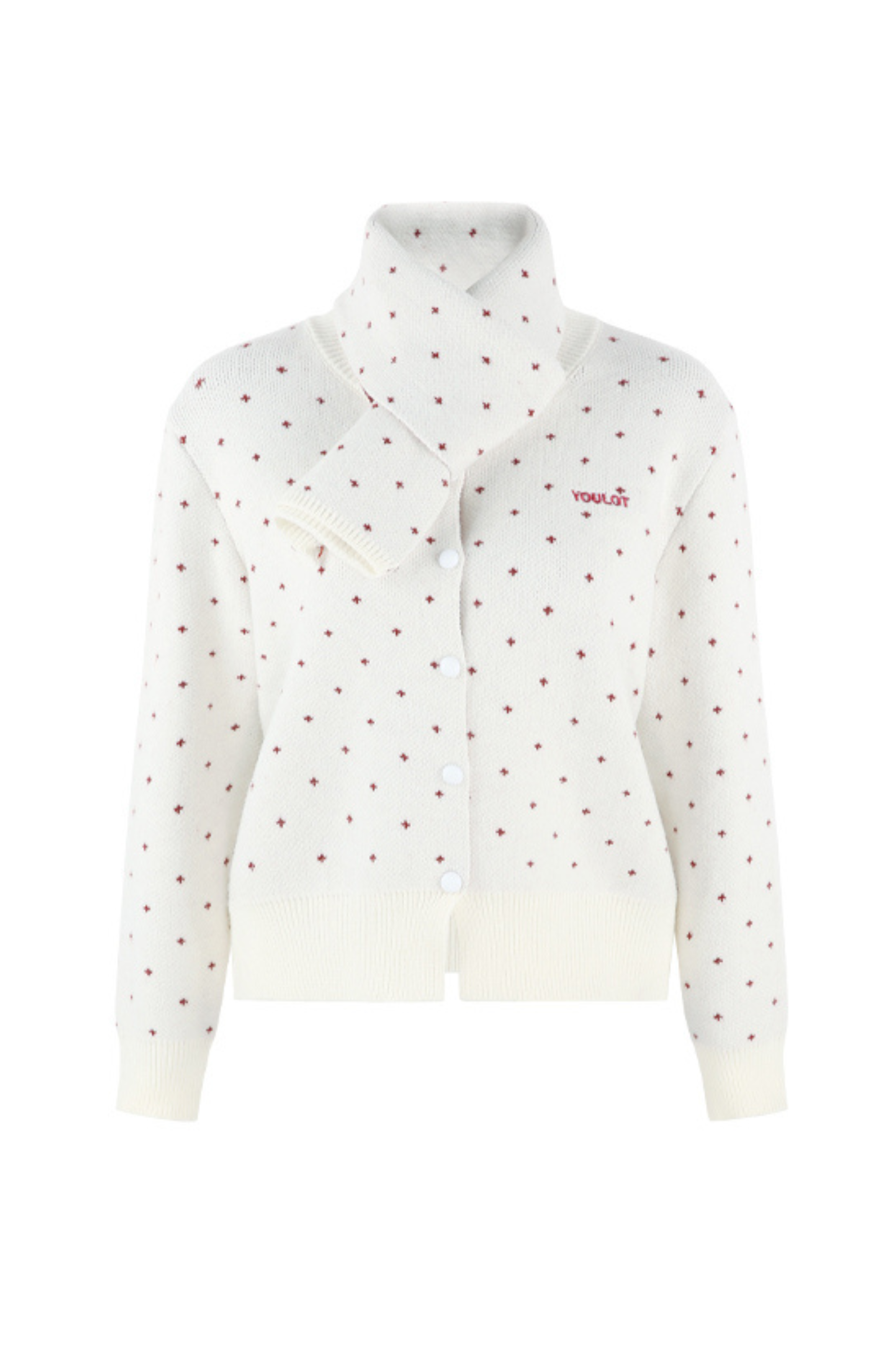 ❤フレンチスタイルドットマフラー付きンカーディガン❤