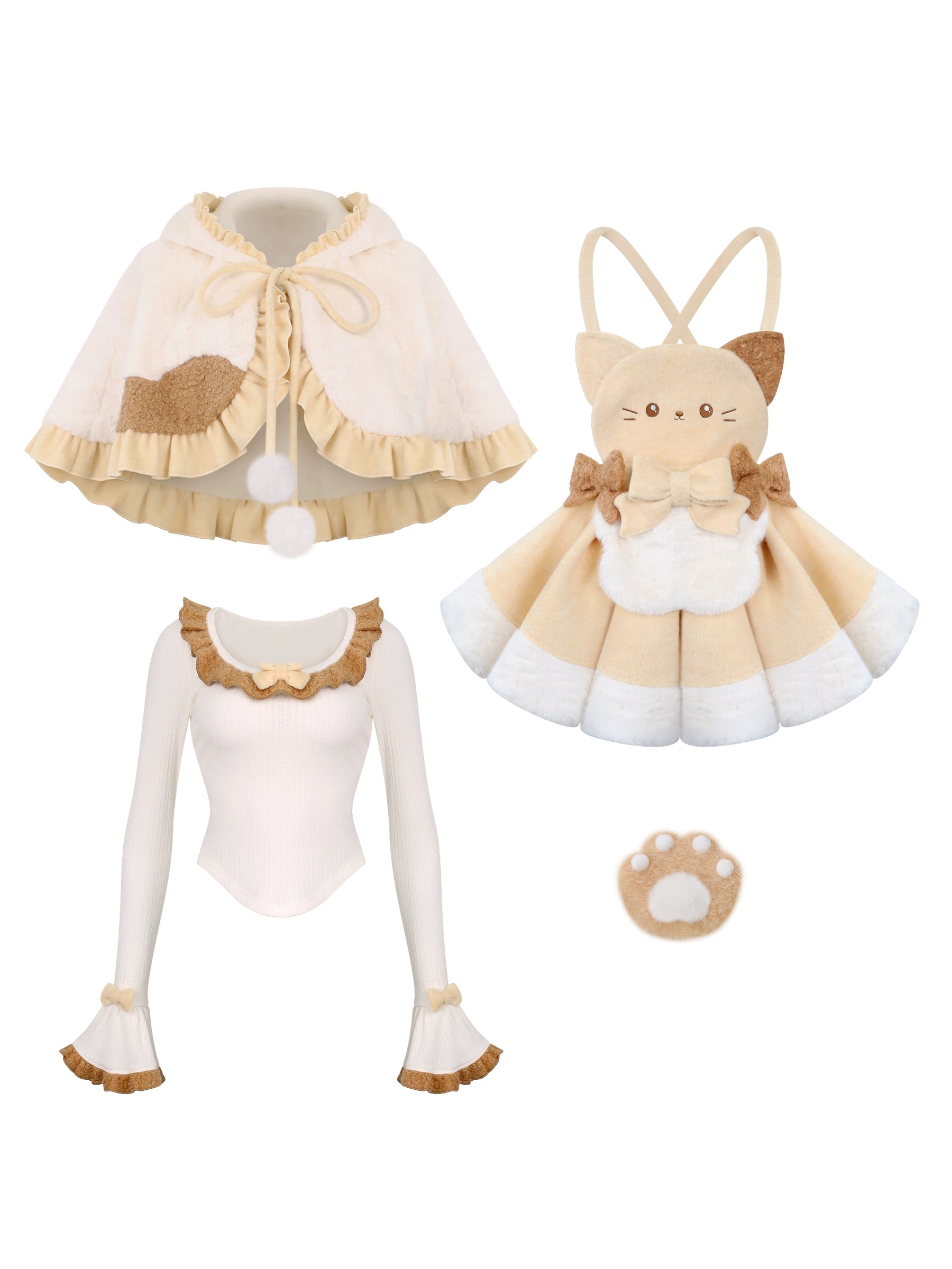 Knit top + kitten suspender skirt with brooch + cape – Belchic Skip to content