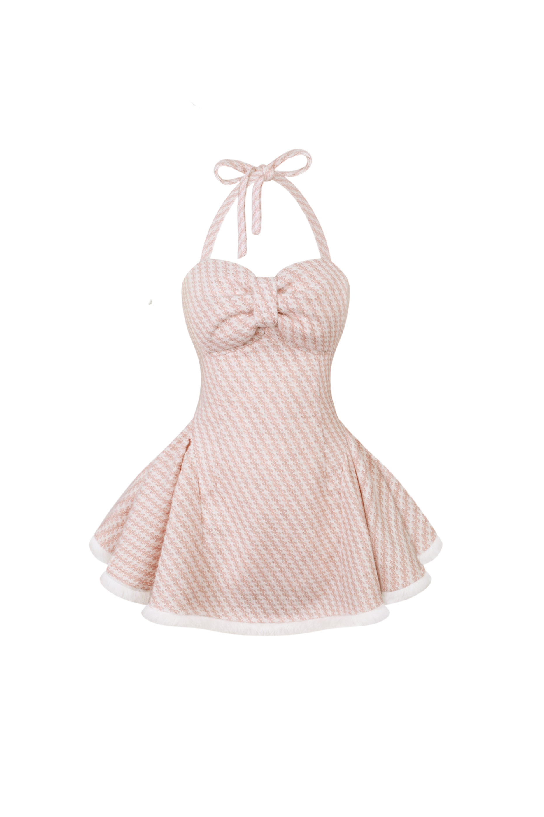 Knit Cardigan + Staggered Lattice Dress + Wool Jacket
