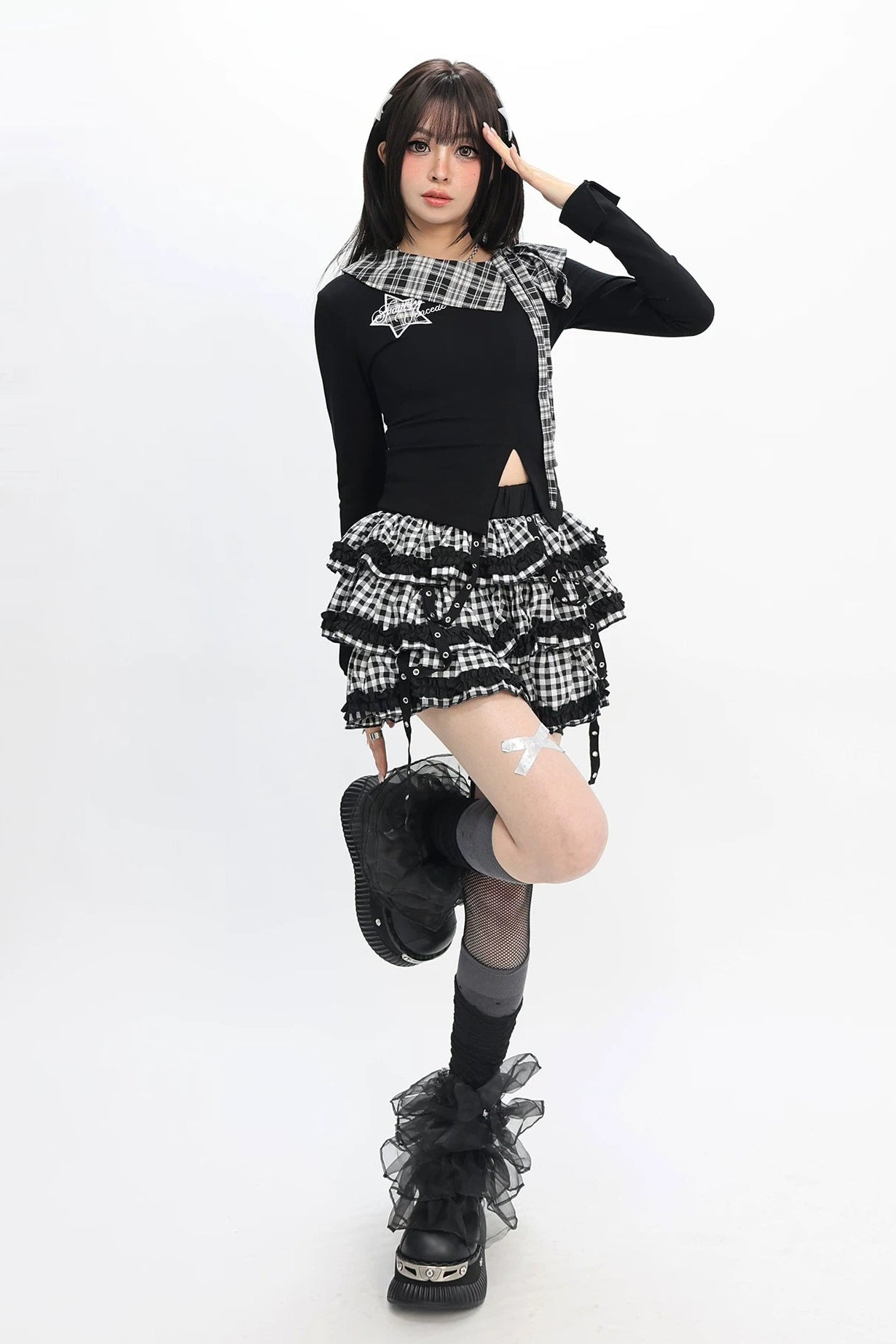 Plaid Fitted Slit Top
