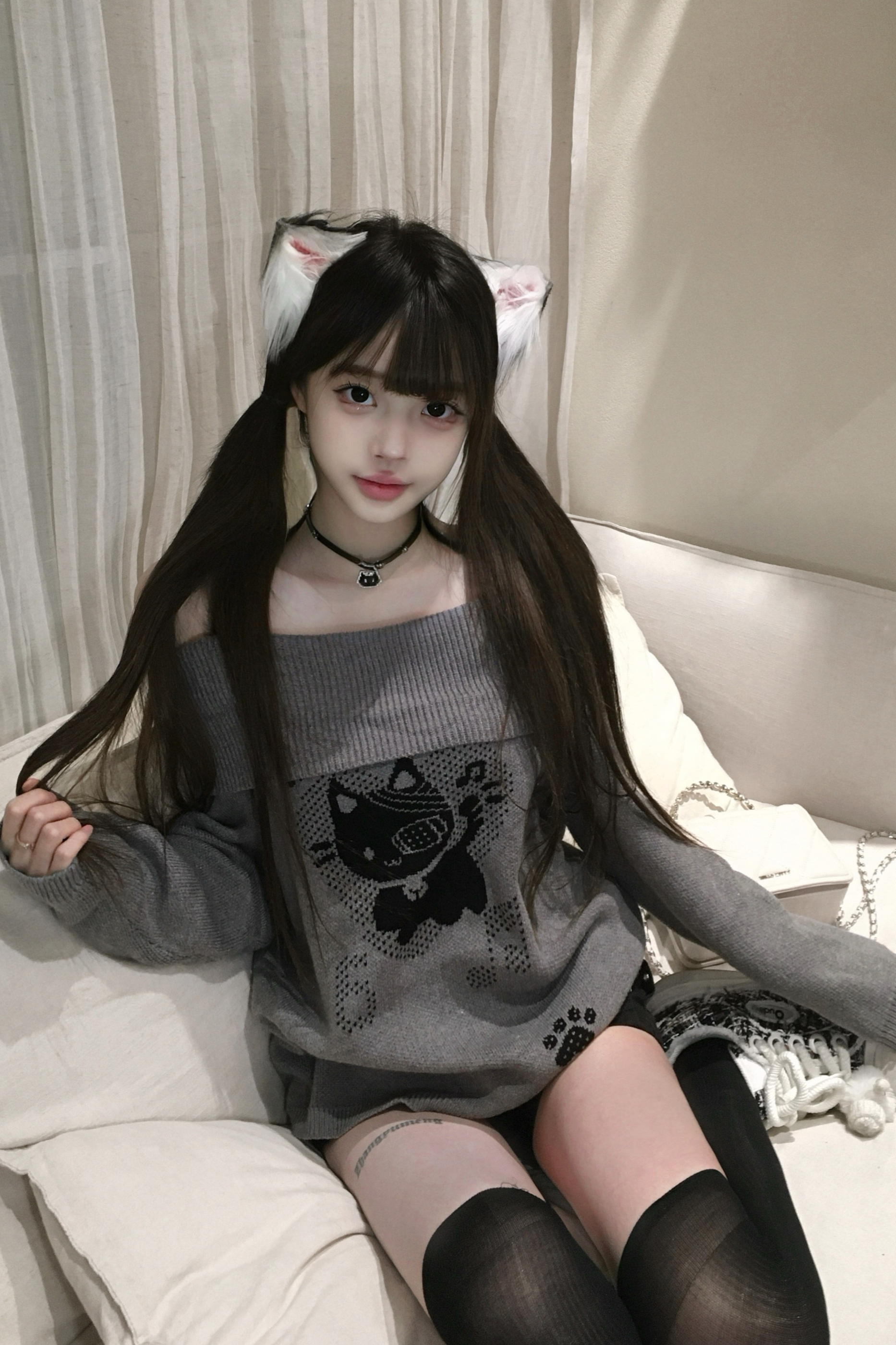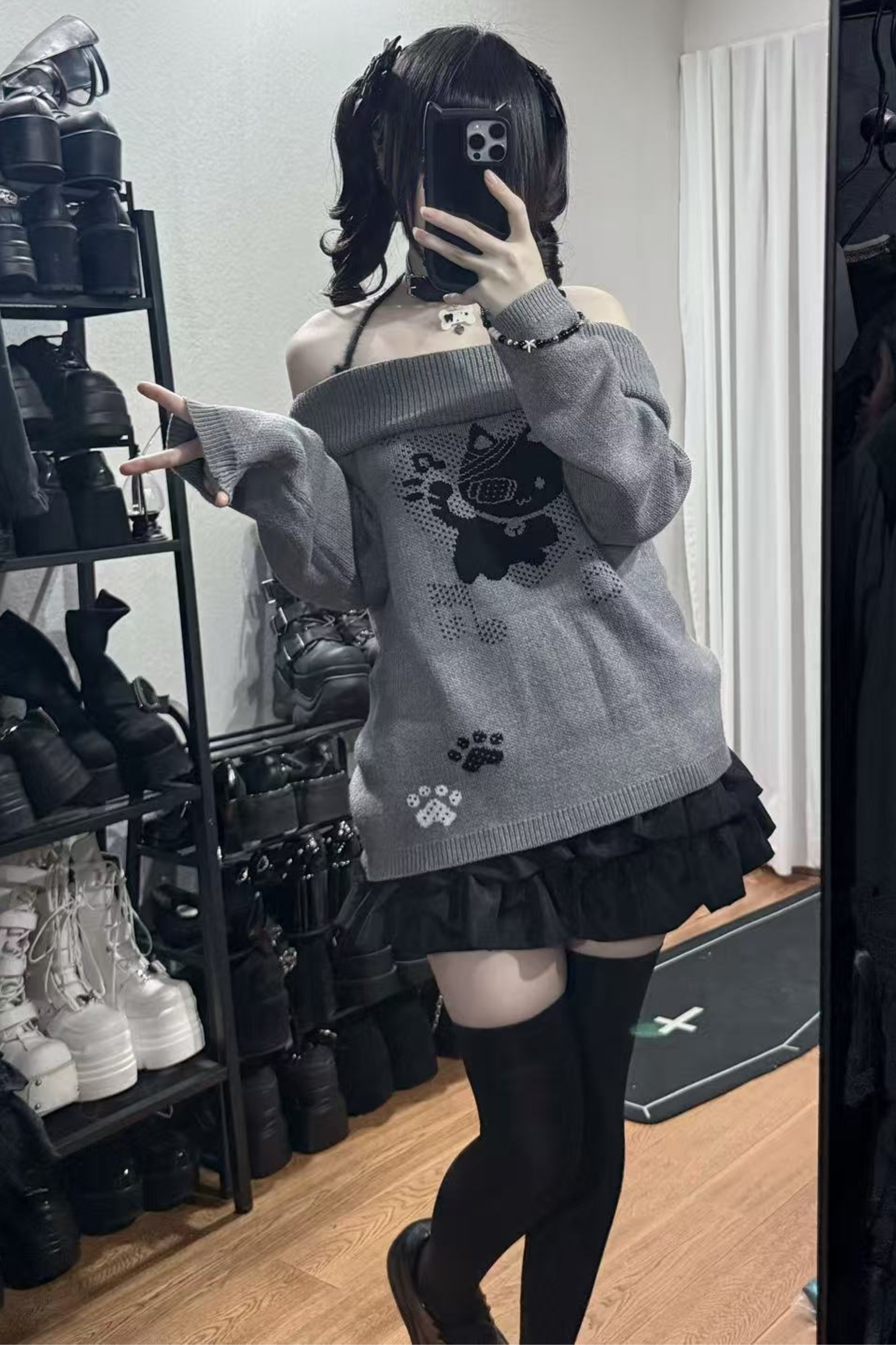 キャットデザインオフショルダートップス – Belchic Skip to content