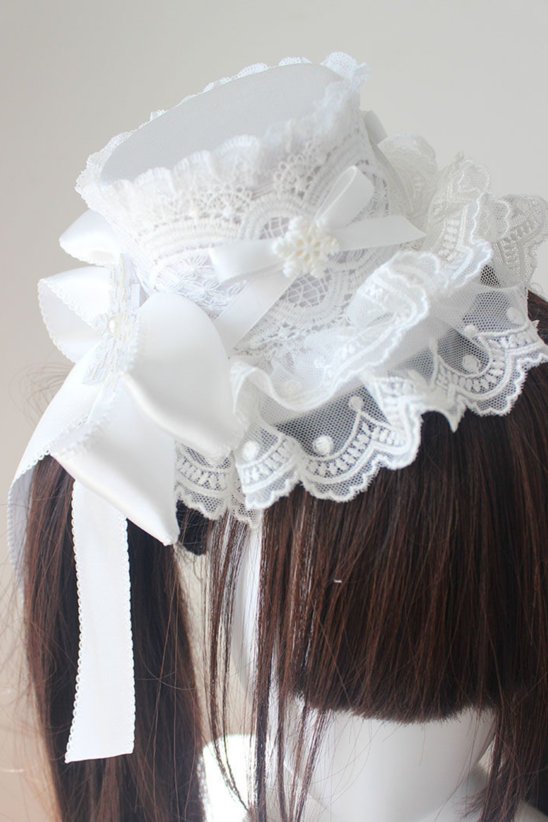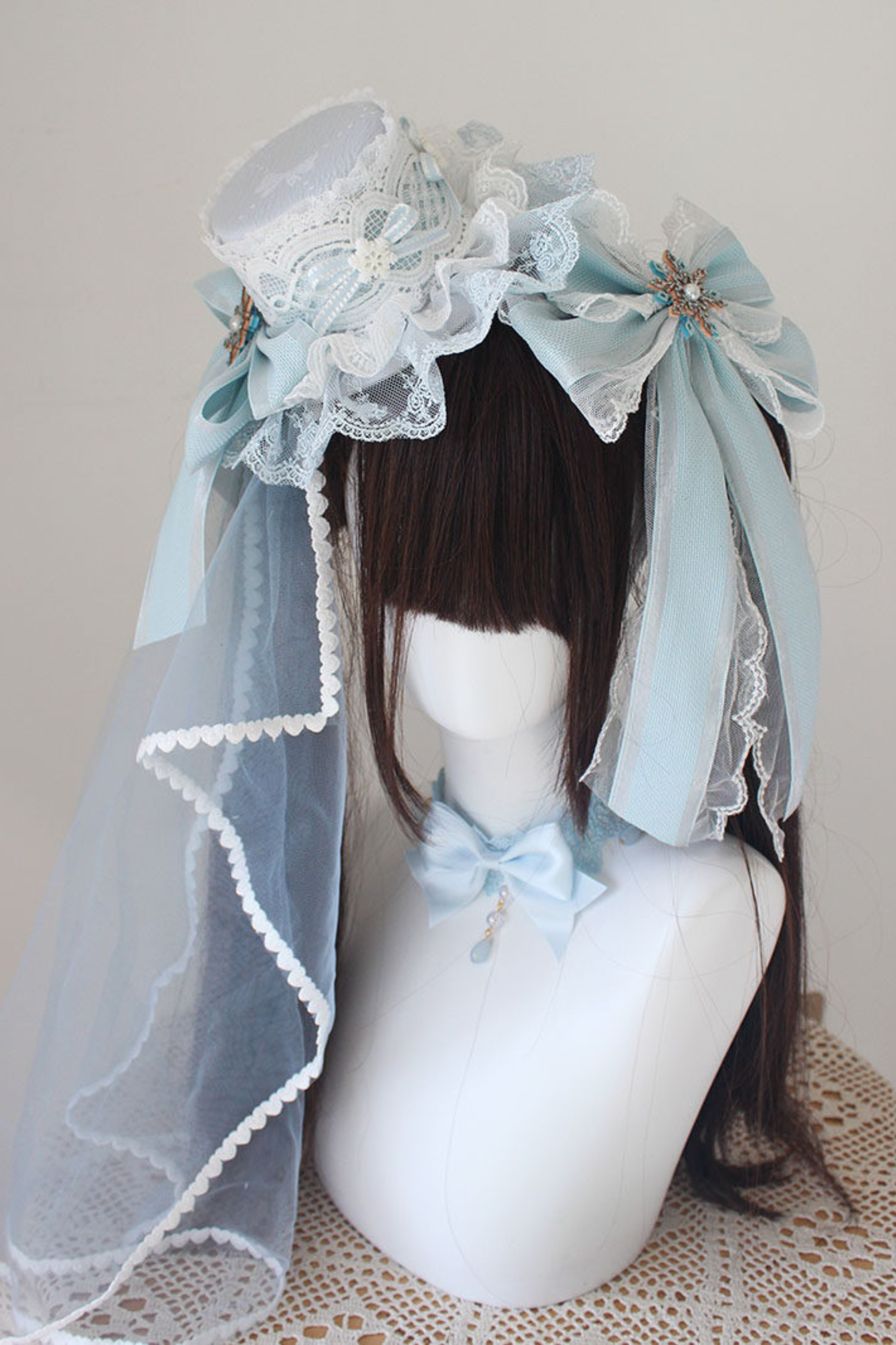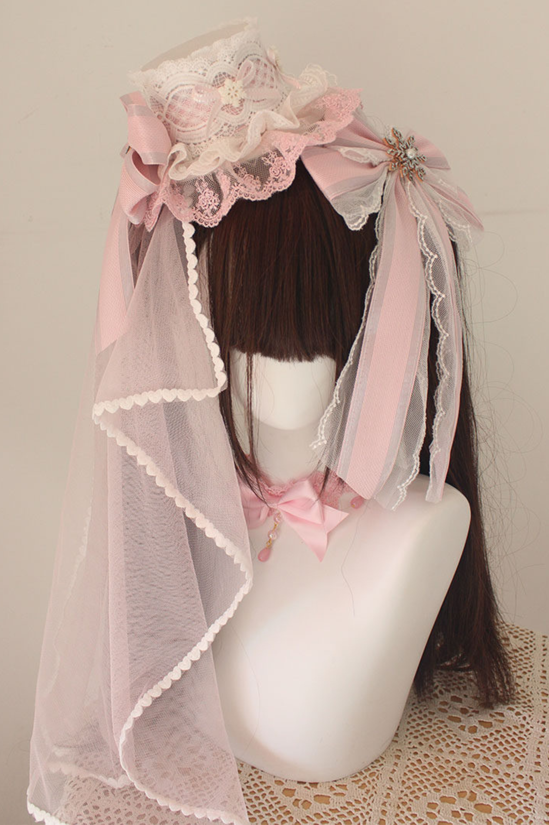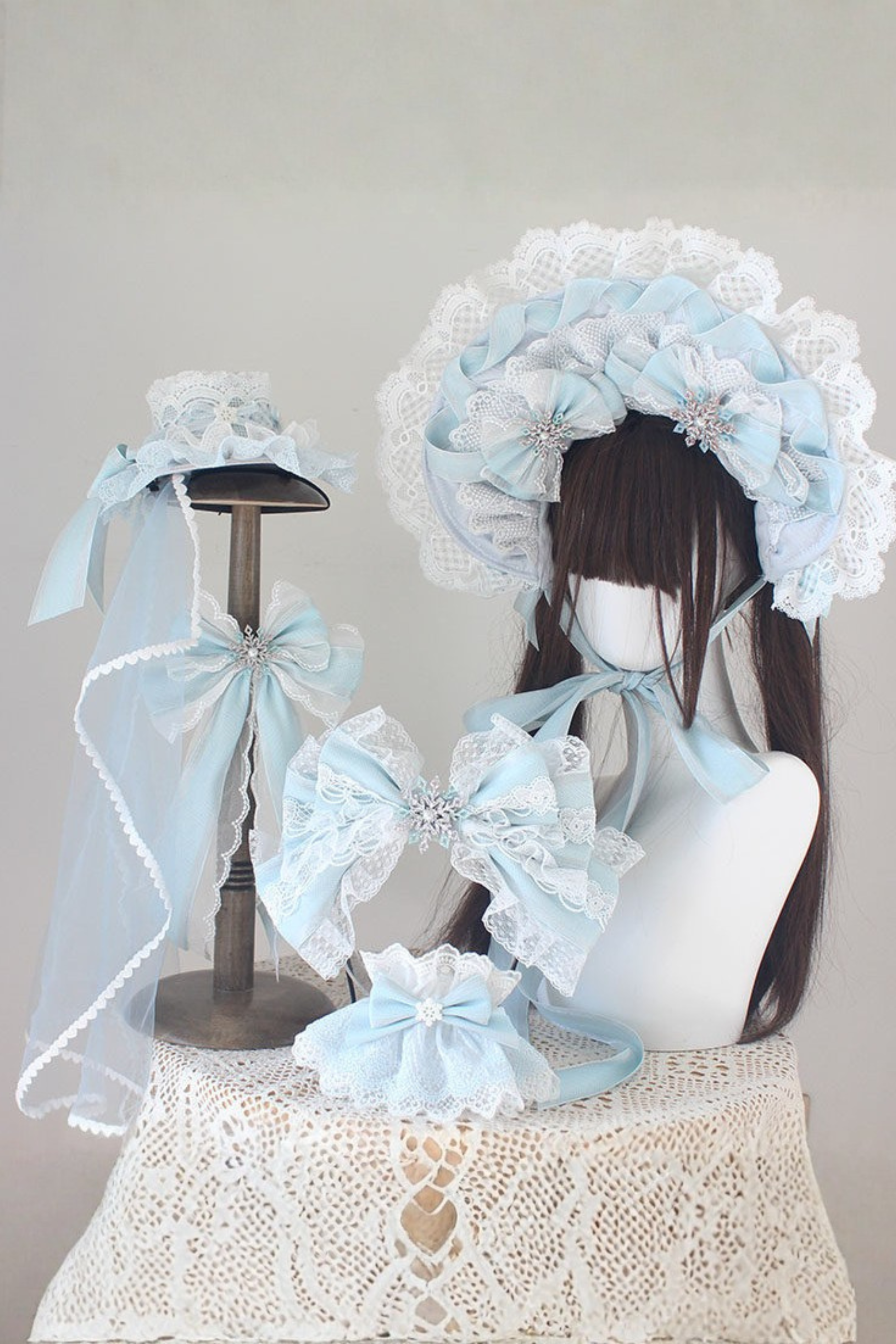 レースロリータボネットハット+カチューシャ+スリーブ+ピン+ハット+ベール
