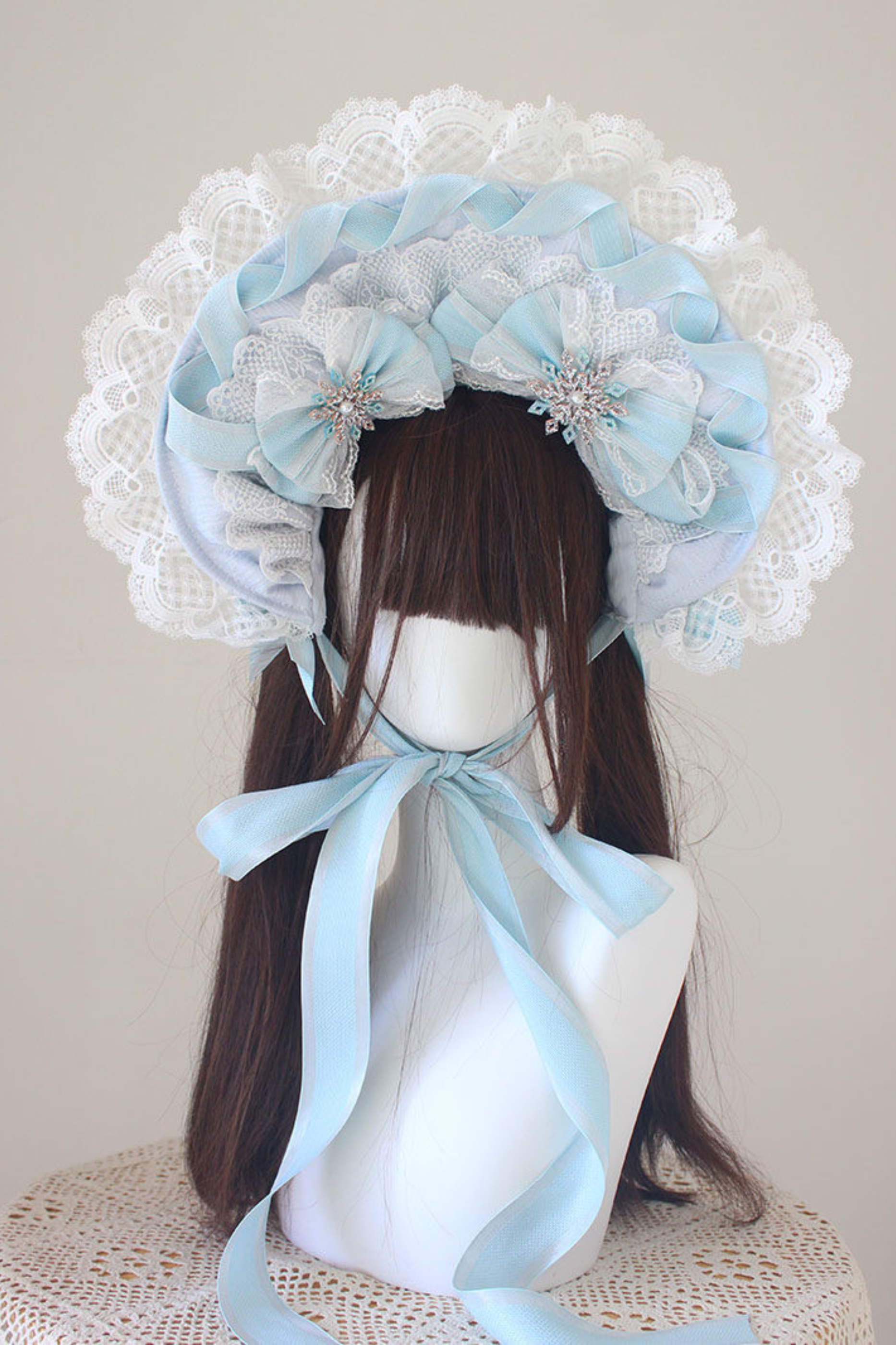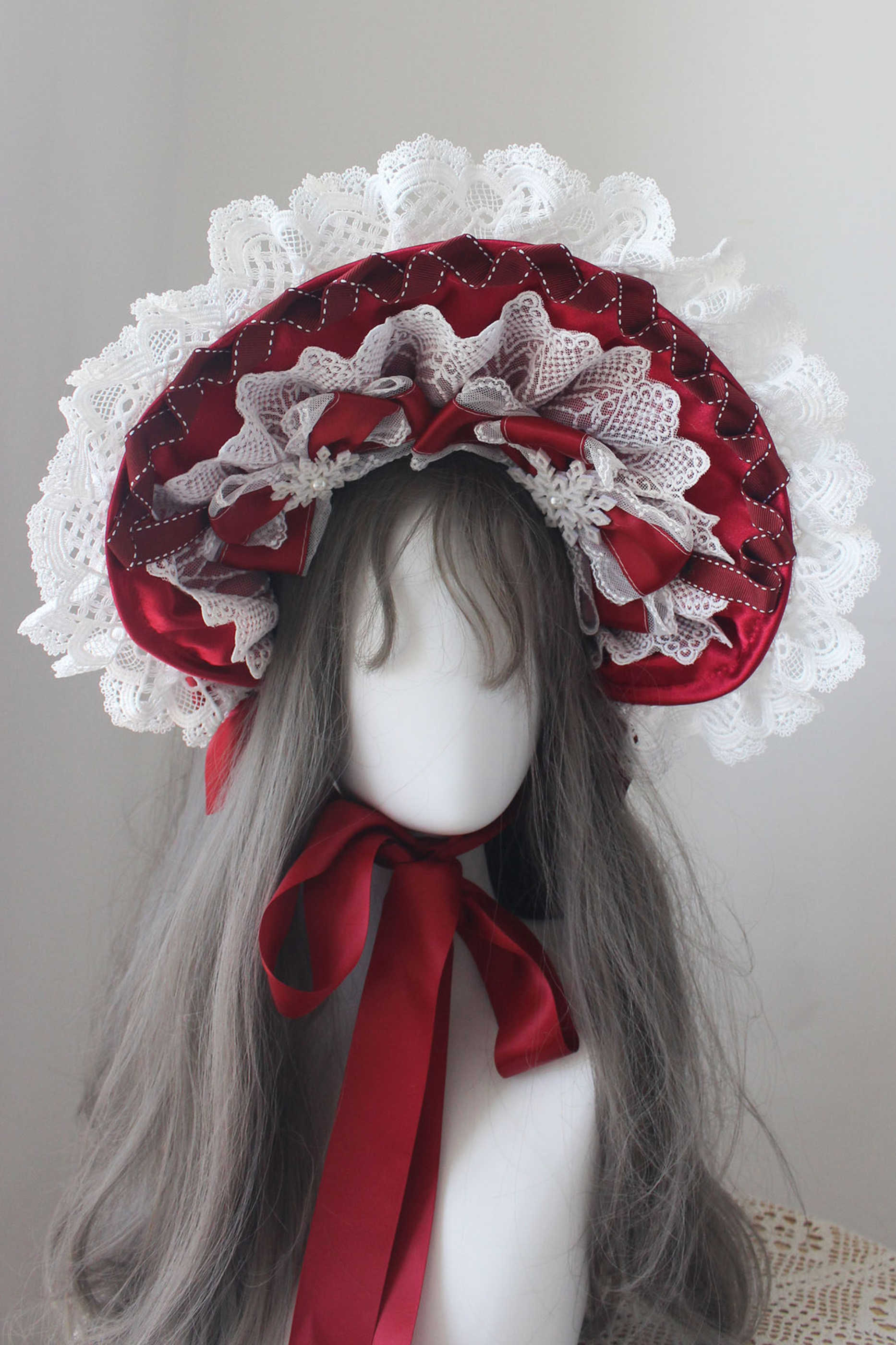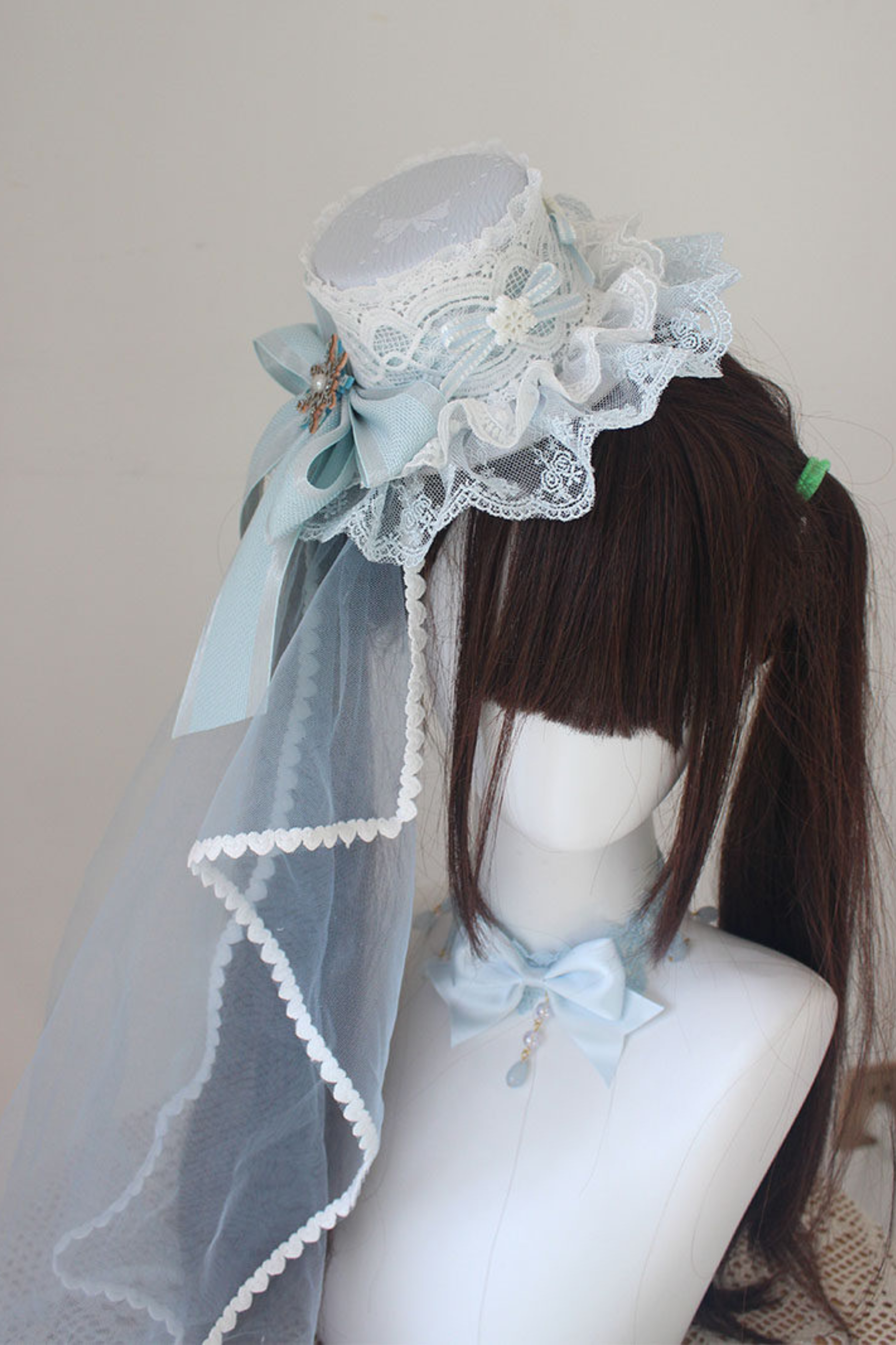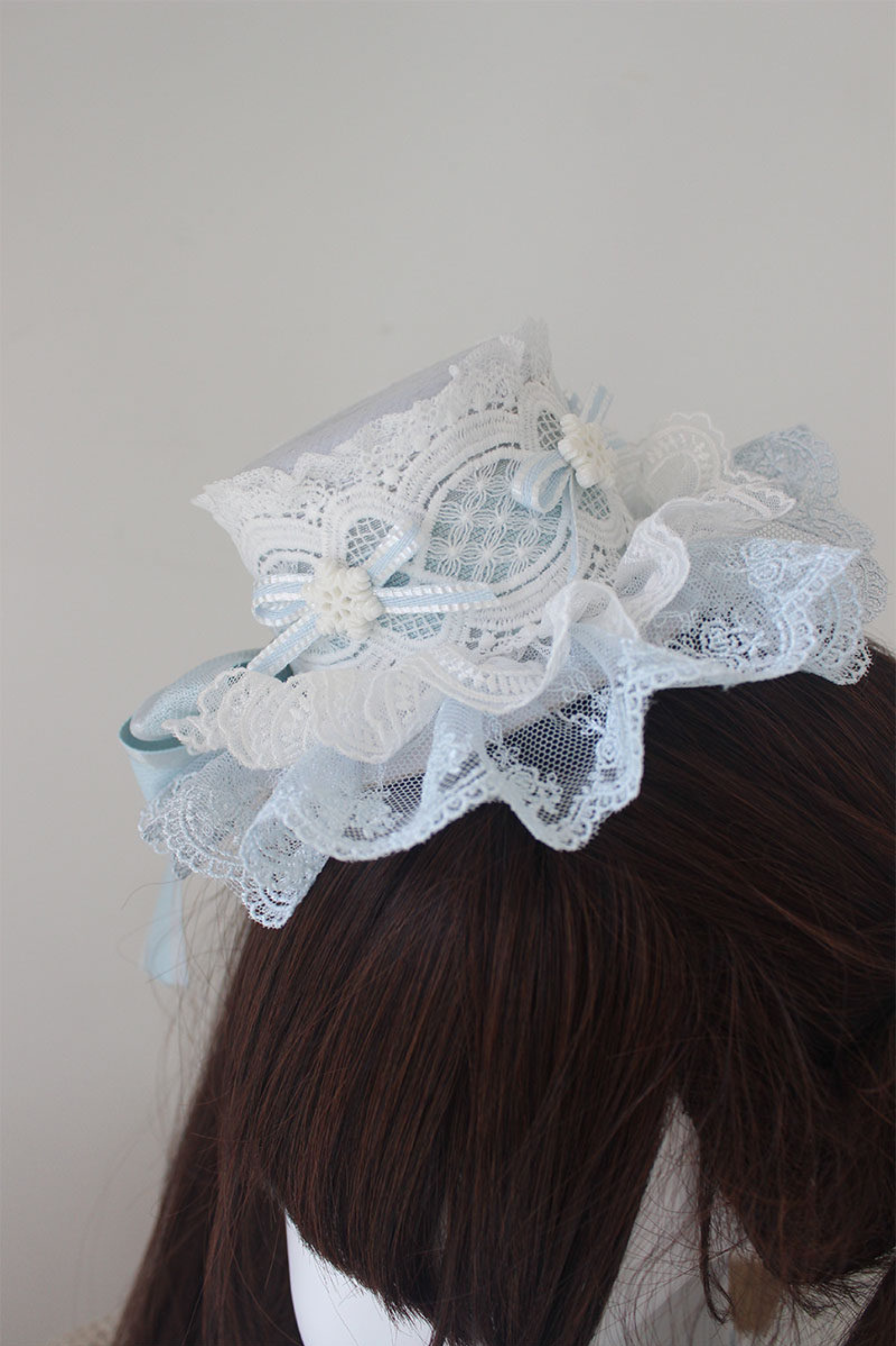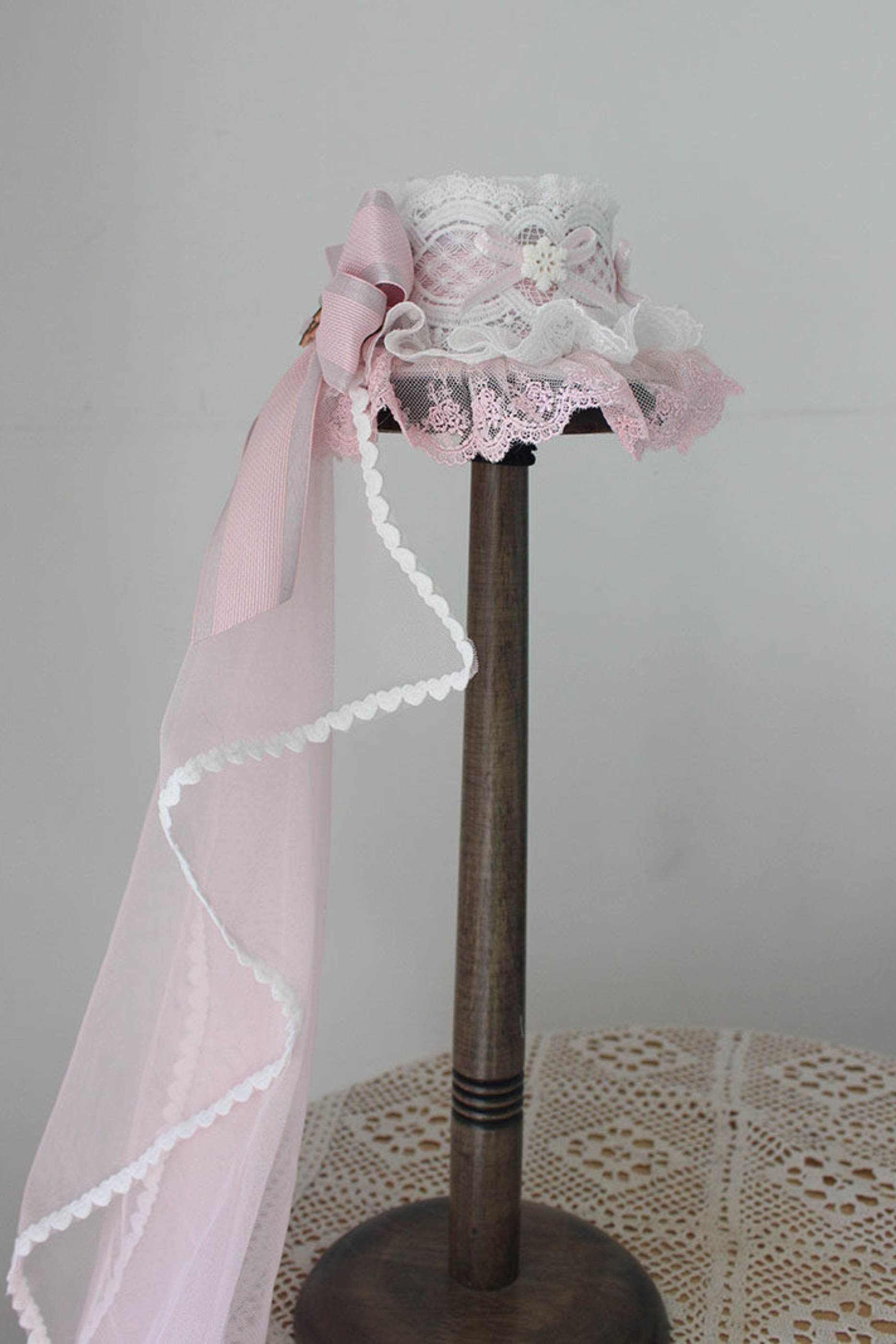 レースロリータボネットハット+カチューシャ+スリーブ+ピン+ハット+ベール