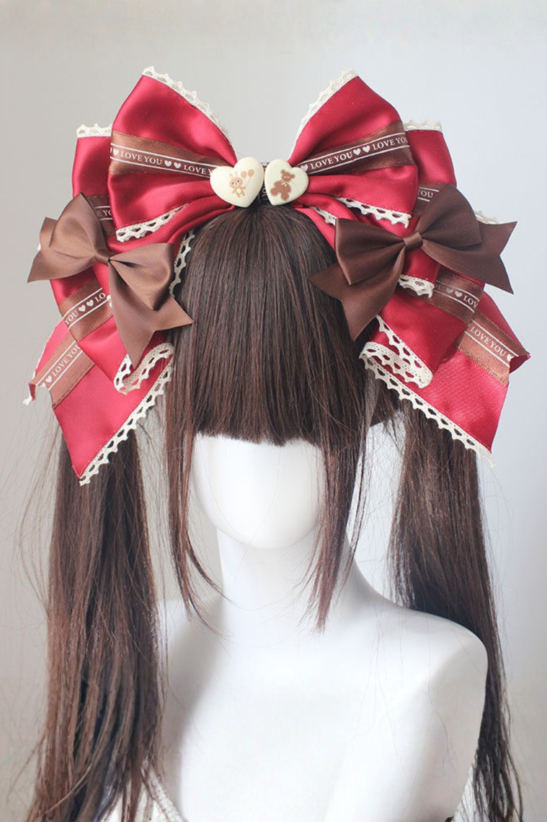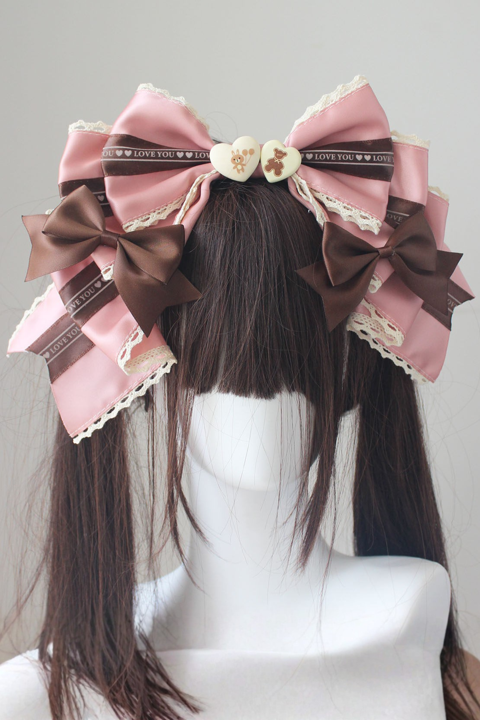 ❤チョコレートバイカラービッグリボンカチューシャ❤