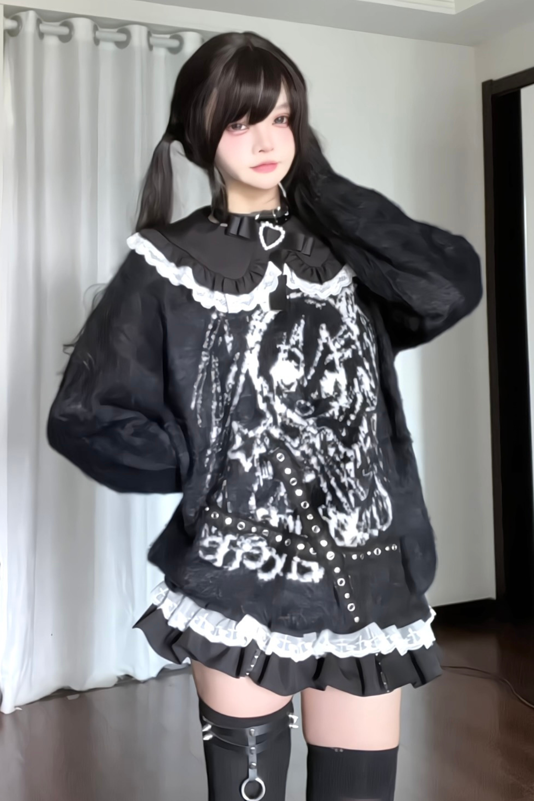❤Dark Girl Loose Sweet Crewneck Top❤