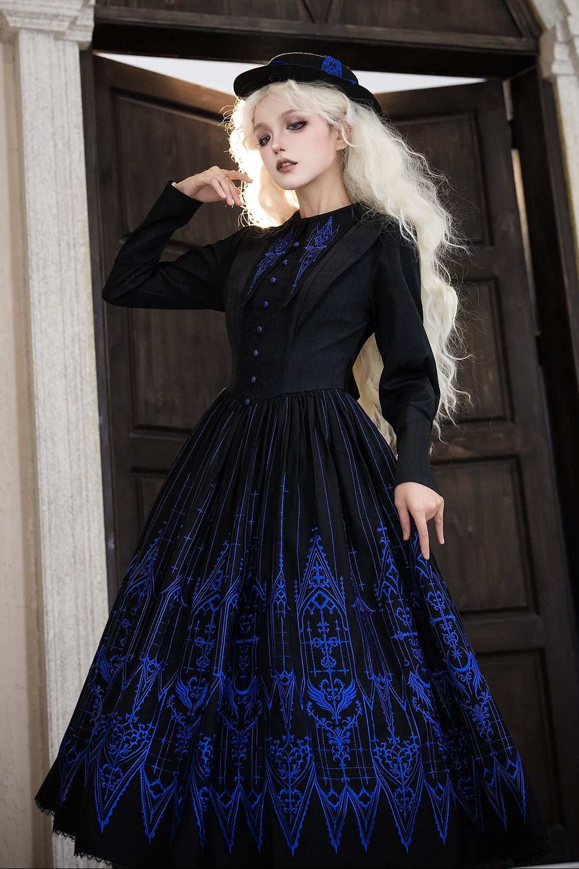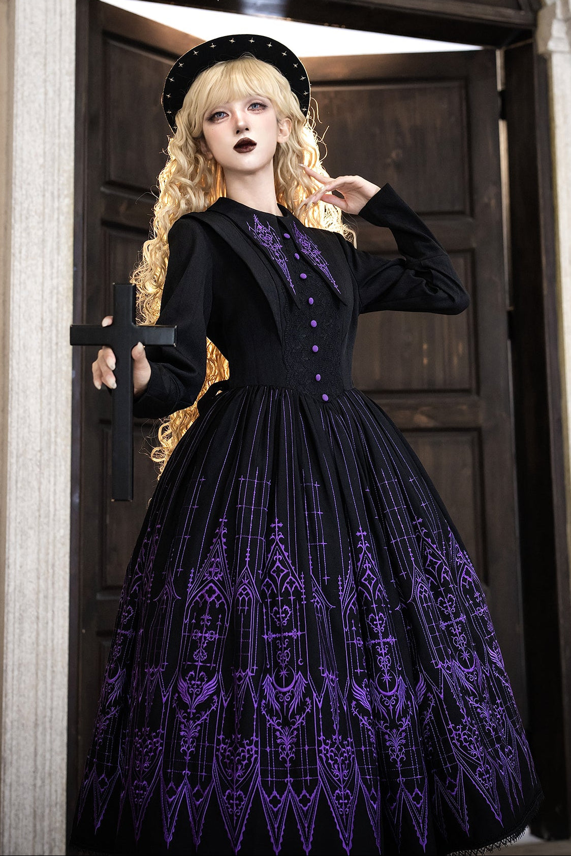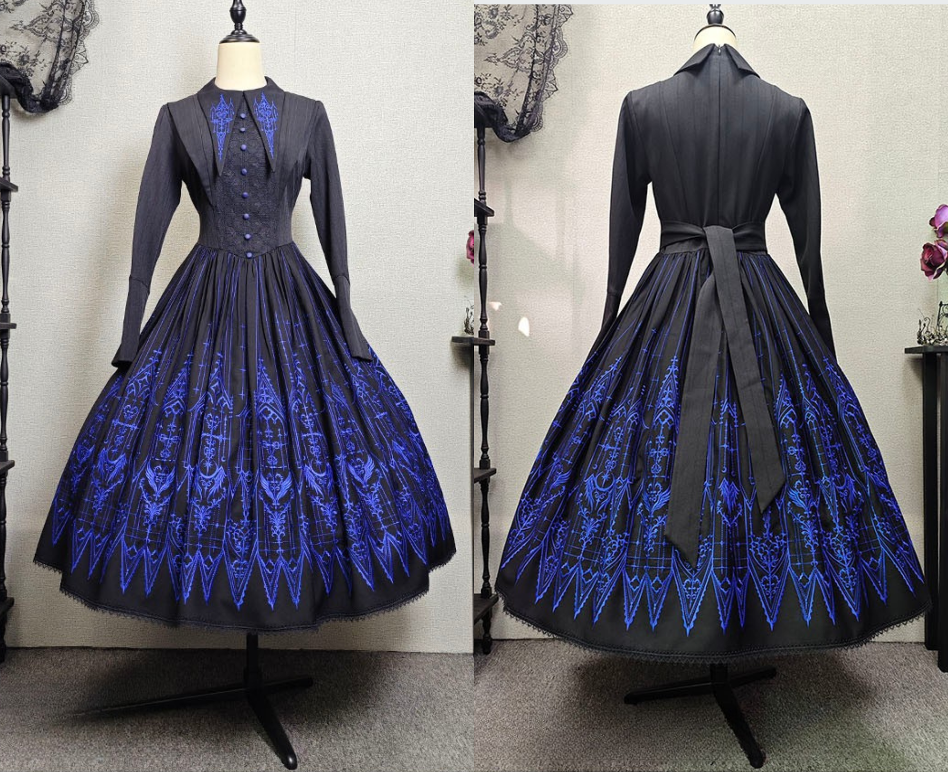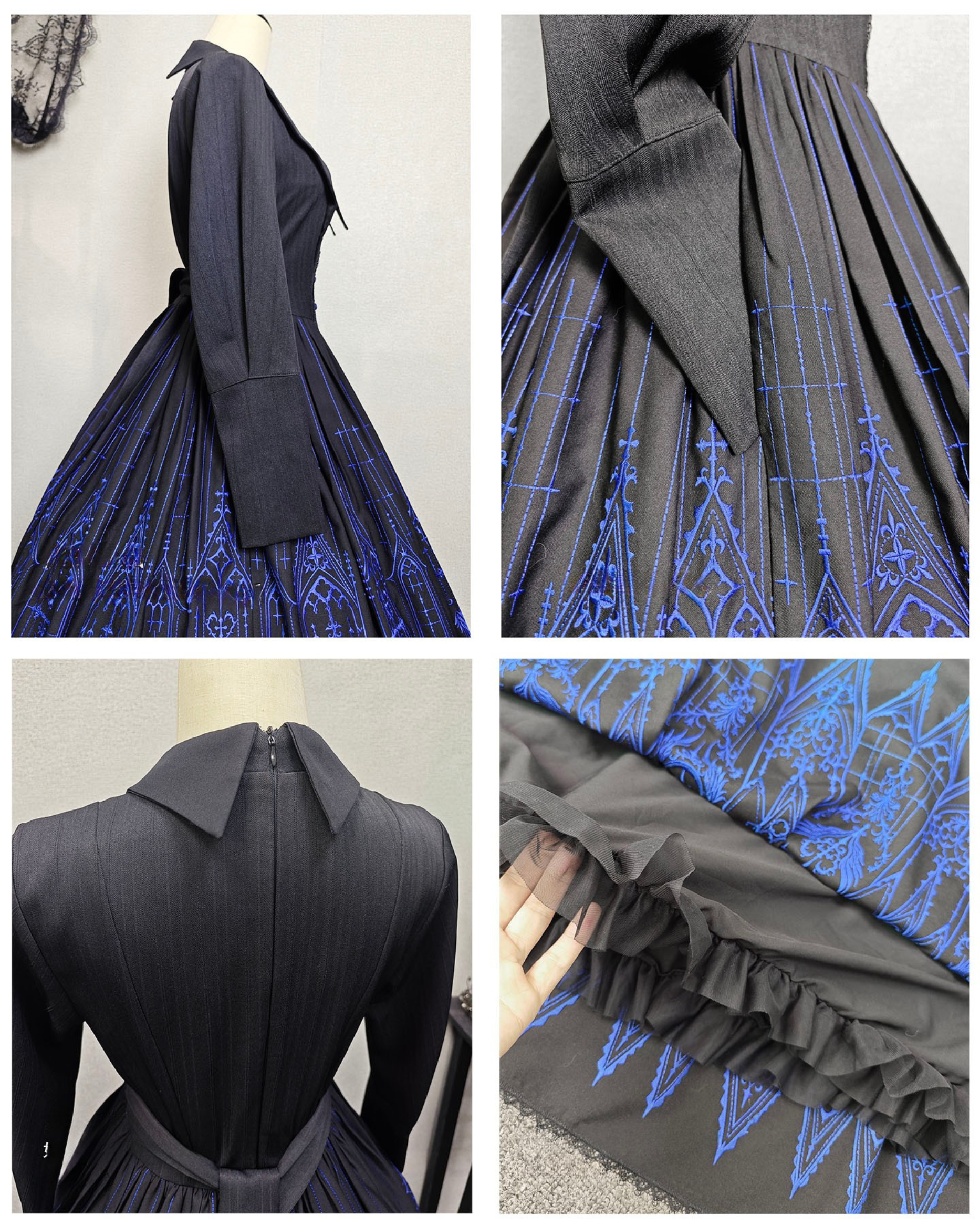 ❤︎【12月27日予約締切】チャーチエンブロイダリーエレガントポインテッドカラーゴシックドレス❤︎                                                ⚠️人気商品のためお届けに4ヶ月ほどかかってしまう場合がございます