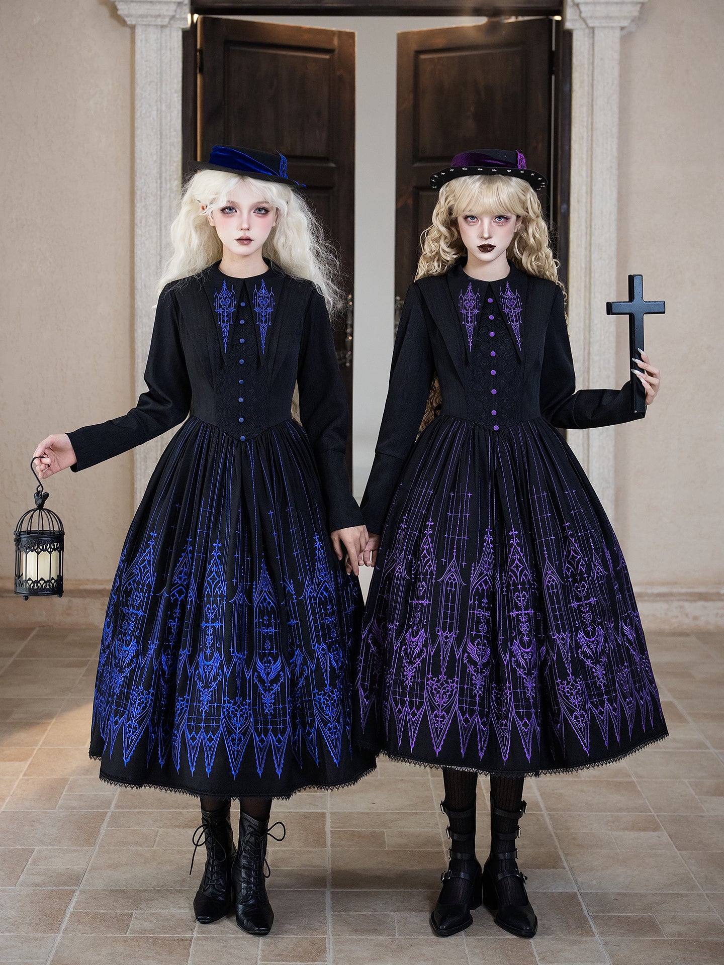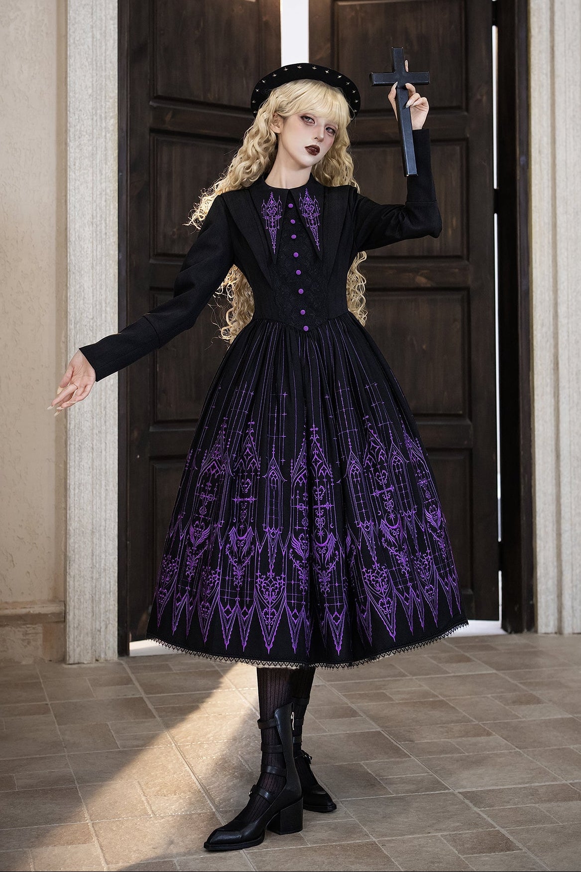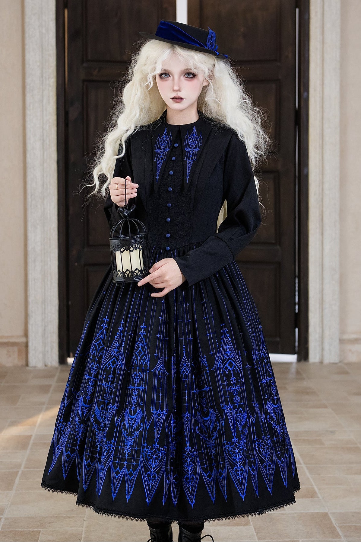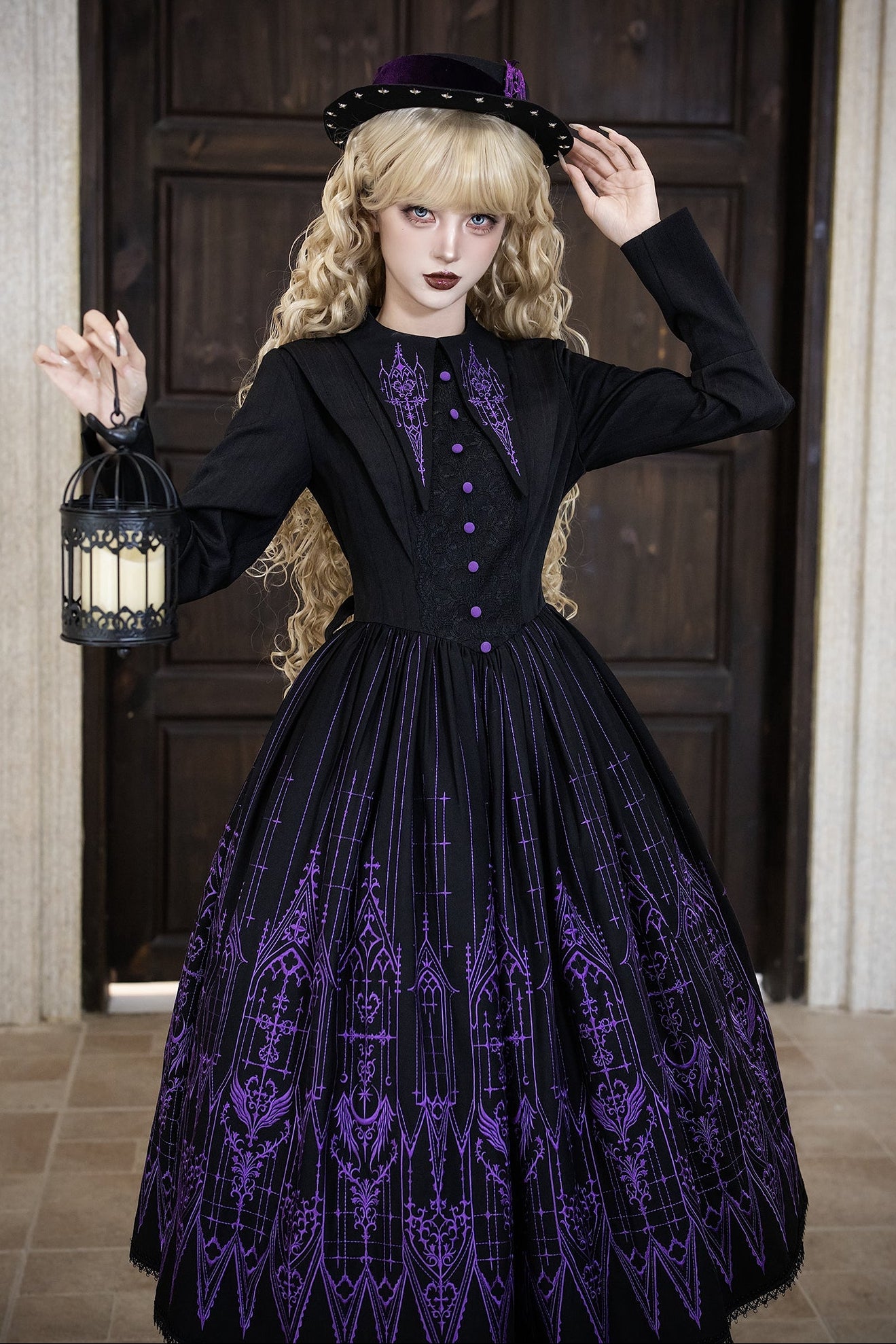 ❤︎【12月27日予約締切】チャーチエンブロイダリーエレガントポインテッドカラーゴシックドレス❤︎                                                ⚠️人気商品のためお届けに4ヶ月ほどかかってしまう場合がございます