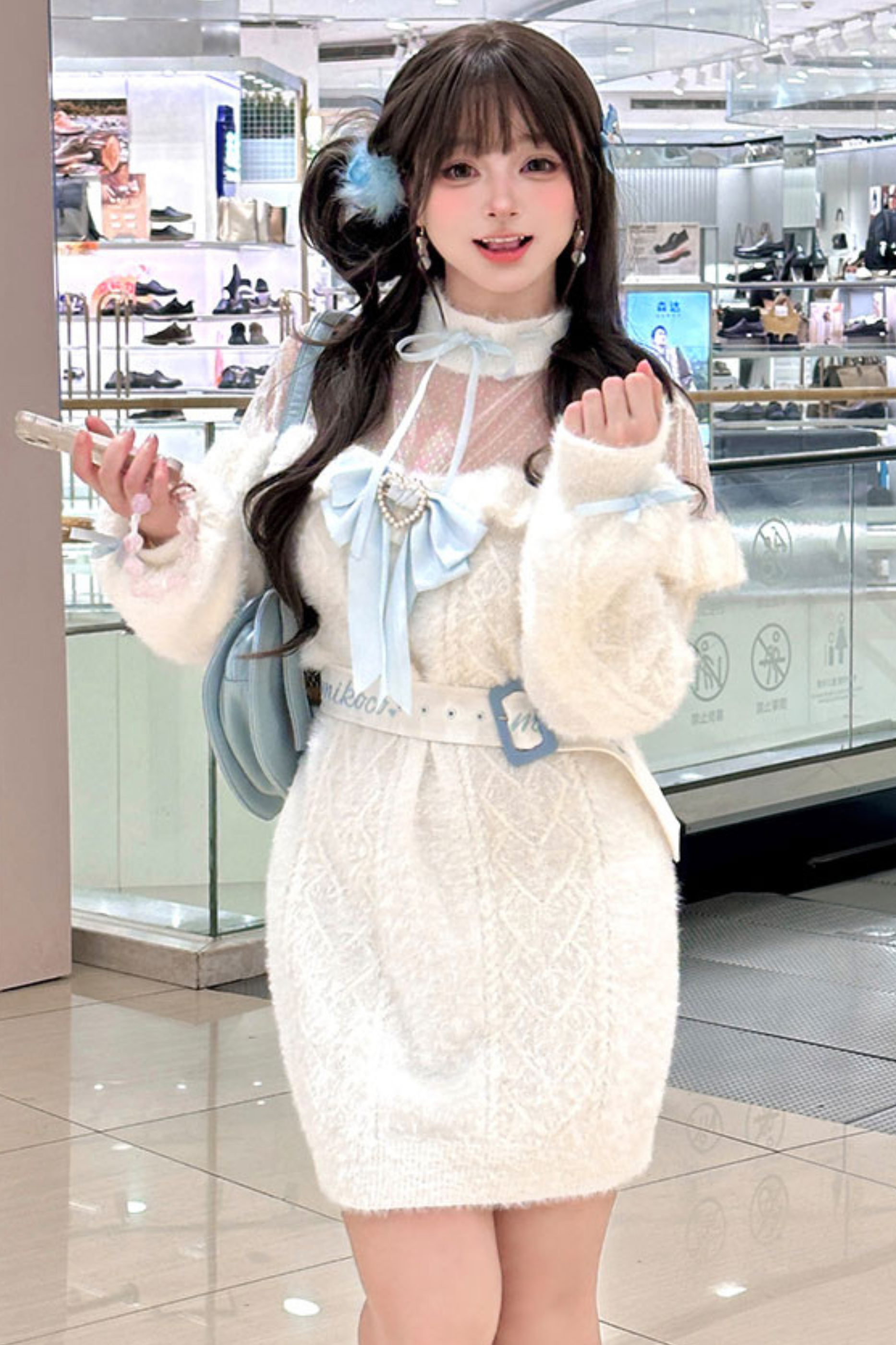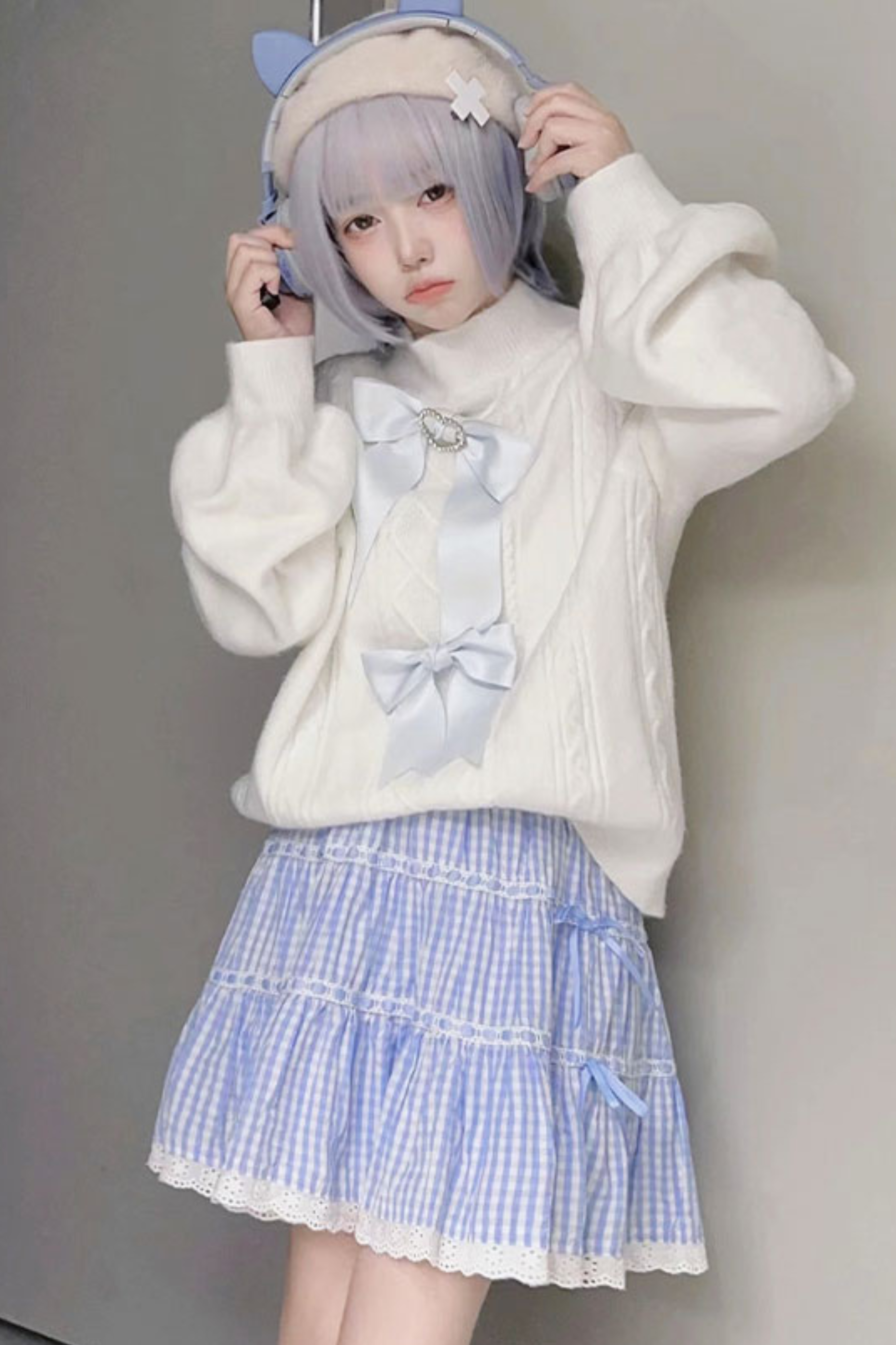 Sweet girly ribbon white aqua top – Belchic Skip to content