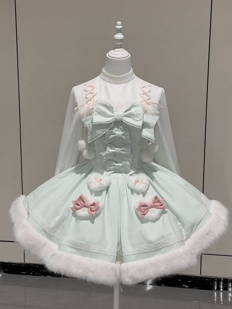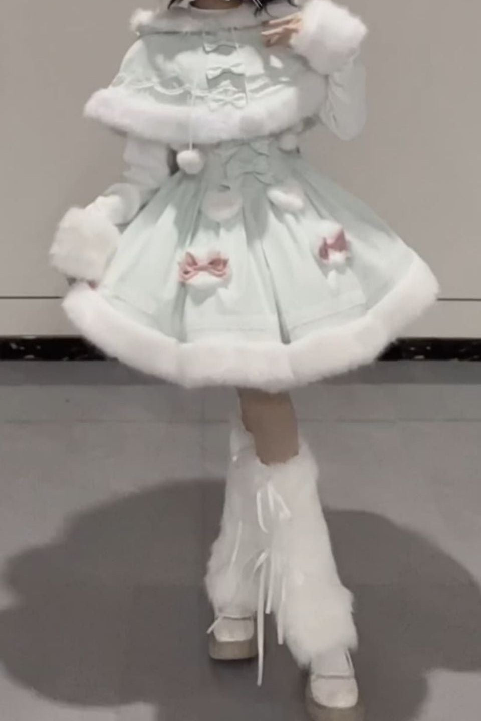 【12月19日予約締切】Sweet Dream Rabbitミントグリーンうさ耳フーディーファーケープ+OPドレス+サスペンダードレス+インナートップス